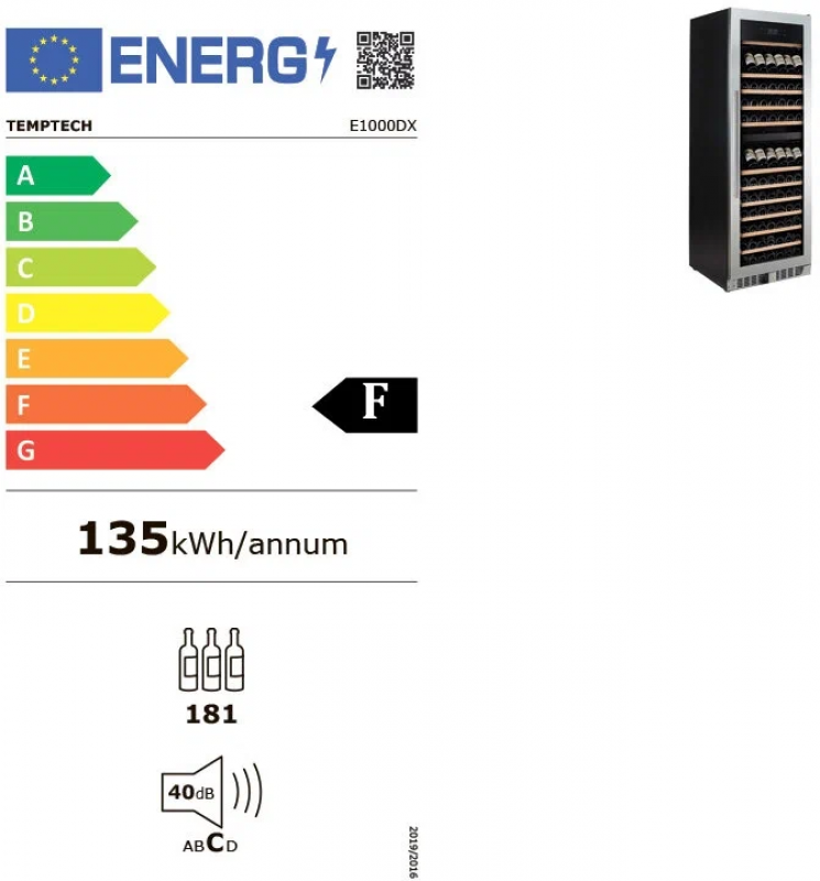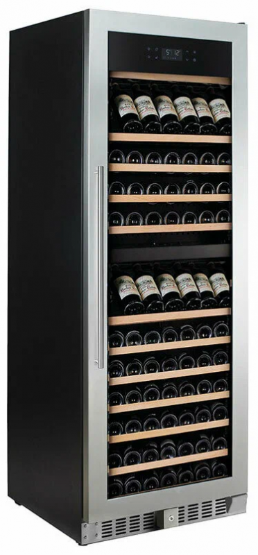 Общие данные:Размеры:высота: 183,5 смширина: 65,5 смглубина: 68 смОбъем: 490 лМаксимальное количество бутылок: 153Тип управления: электронныйКлиматический класс: N (от +16°C до +32°C)Класс энергопотребления: FГодовое потребление энергии: 135 кВтчЦвет корпуса: ЧёрныйЦвет дверцы: Нержавеющая стальКоличество температурных зон: 2Диапазон температур: 5-20°C, 5-20°CТип системы охлаждения: компрессорныйВинное отделение:Полки: 12Угольный фильтрПодсветка (синий/красный)Дополнительная информация:Возможность встраиванияЗамок двериУФ-фильтрХладагент: R600aУровень шума (дБ): 40