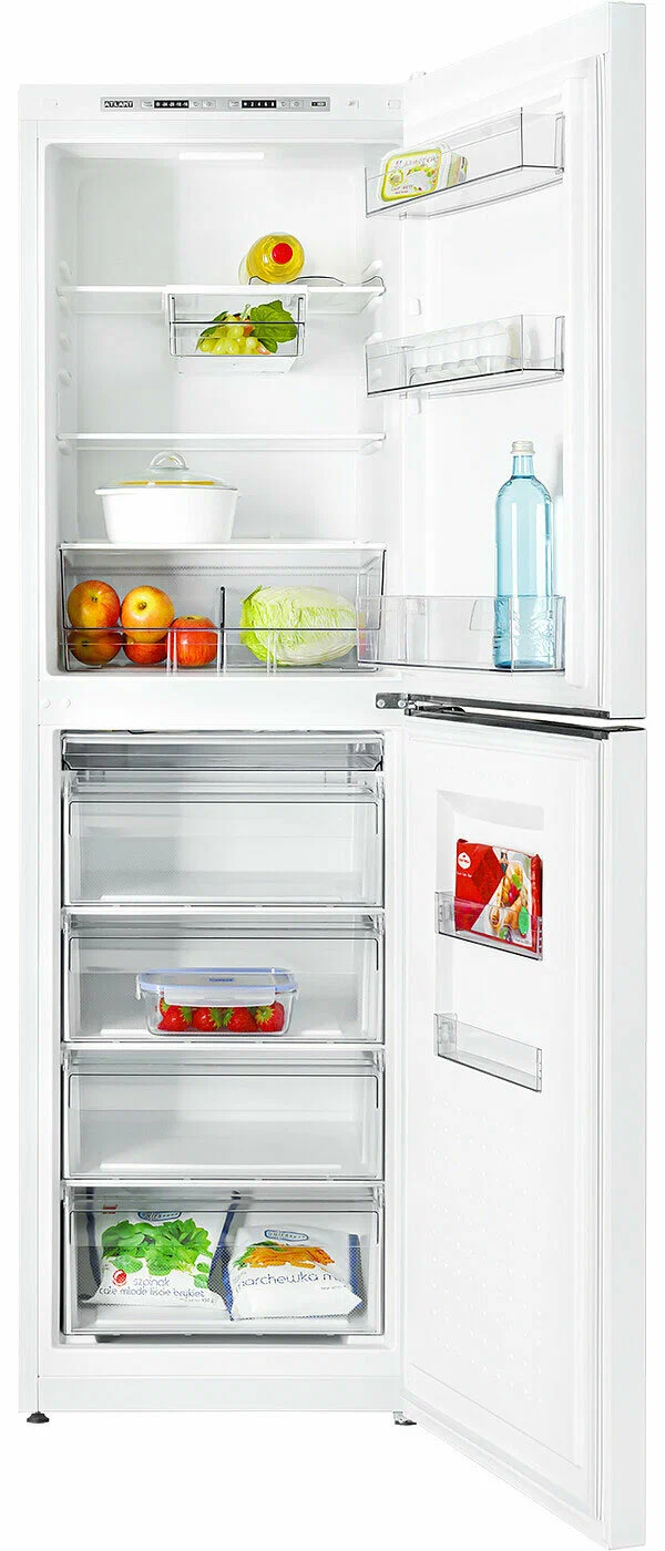 Холодильник ATLANT ADVANCE ХМ-6623-109 отличный выбор для вашей кухни С энергоэффективностью класса A и двумя компрессорами он надежно хранит продукты и сохраняет их свежесть. Удобные регулируемые полки и антибактериальная защита делают использование комфортным, а специальное отделение Super Fresh Box позволяет оптимально хранить мясо и рыбу. Яркая LED-подсветка поможет быстро находить нужные продукты, а технология Volt Security защитит холодильник от перепадов напряжения. С гарантией 3 года и сроком эксплуатации до 10 лет вы можете быть уверены в качестве. Холодильник ATLANT ADVANCE ХМ-6623-109 это практичное и удобное решение для всей семьиОсобенности:Интегрированные ручкиОсобая интегрированная форма дверных ручек подчёркивает современный минималистичный дизайн серии. Такая конструкция эргономична и удобна для захвата, а отсутствие выступающих деталей позволит сочетать холодильник с любым кухонным оборудованиемSuper Fresh BoxВ отделении свежести постоянно поддерживается оптимальная температура и подходящая влажность, за счет чего продукты всегда имеют свежий вкус и отличную сохранностьВыдвижная пластмассовая корзинаВ стандартных корзинах используется принцип модульности и взаимозаменяемости, они легко извлекаются из морозильного отделения, легко переносятся за боковые ручки, в них хранятся основная масса самых различных продуктов для замораживания.Панель управленияПанель Touch Control - электронное управление без дисплея (терморегулятор электронный), в холодильнике установлен электронный датчик температуры.Вкладыш для яицВкладыш для 10 яиц можно устанавливать как в емкость на двери, так и на полку отделенияДве емкости Slim SpaceВ емкостях Slim Space хранят маленькие упаковки с маслом или тестом. Если снять одну из емкостей, то в другой можно разместить упаковку побольшеСосуд для овощей и фруктовСосуд с разделителем для овощей и фруктовЕмкость нижняя с ограничителемОграничитель в нижней емкости двери плотно прижимает высокие бутылки или другие емкостиПодставка для бутылок и подвесной сосудПоддон для замораживания ягод и других мелких продуктовДля быстрого замораживания ягод, грибов, пельменей, небольших кусков мяса предусмотрен специальный сосуд поддон, на котором раскладывают продукты так, чтобы они не касались друг другаОбщие данные:Размеры:высота (см): 196.8ширина (см): 59.5глубина (см): 62.7Общий объем/ Полезный объем:Холодильника (л): 355/341Холодильной камеры (вкл. зону свежести) (л): -/182Морозильной камеры (л): -/159Тип управления: электронныйКласс энергопотребления: AКлиматический класс: SN-T (от 10С до 43С)Количество компрессоров: 2Годовое потребление энергии: 332 кВтчЦвет: белыйХолодильное отделение:Полки из закаленного стекла: 3Количество барьеров на двери: 3 штЗона свежести (Super Fresh Box)Температура хранения свежих продуктов: до 8 CСредняя температура хранения свежих продуктов: 4 CКапельное оттаиваниеВнутреннее LED освещениеФункция СуперохлаждениеВыдвижной подвесной контейнер (Pull Box)Корзина для овощей и фруктов с разделителем (GREEN BOX)Вкладыши для яицПодставка для бутылокОграничитель для бутылокМорозильное отделение:Ручная разморозкаНоминальное время повышения температуры продуктов от -18 C до -9 C при отключении электроэнергии: 20 чМощность замораживания при температуре окр. среды 25С: 14 кг/суткиТемпература: - 18СФункция быстрого замораживанияКоличество отделений: 