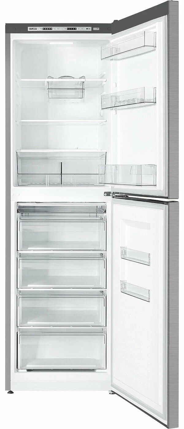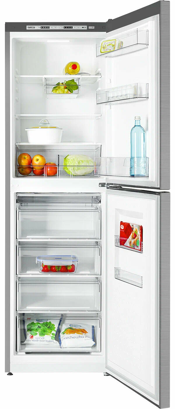 Холодильник ATLANT ADVANCE ХМ-6623-149 отличный выбор для вашей кухни С энергоэффективностью класса A и двумя компрессорами он надежно хранит продукты и сохраняет их свежесть. Удобные регулируемые полки и антибактериальная защита делают использование комфортным, а специальное отделение Super Fresh Box позволяет оптимально хранить мясо и рыбу. Яркая LED-подсветка поможет быстро находить нужные продукты, а технология Volt Security защитит холодильник от перепадов напряжения. С гарантией 3 года и сроком эксплуатации до 10 лет вы можете быть уверены в качестве. Холодильник ATLANT ADVANCE ХМ-6623-149 это практичное и удобное решение для всей семьиОсобенности:Интегрированные ручкиОсобая интегрированная форма дверных ручек подчёркивает современный минималистичный дизайн серии. Такая конструкция эргономична и удобна для захвата, а отсутствие выступающих деталей позволит сочетать холодильник с любым кухонным оборудованиемSuper Fresh BoxВ отделении свежести постоянно поддерживается оптимальная температура и подходящая влажность, за счет чего продукты всегда имеют свежий вкус и отличную сохранностьВыдвижная пластмассовая корзинаВ стандартных корзинах используется принцип модульности и взаимозаменяемости, они легко извлекаются из морозильного отделения, легко переносятся за боковые ручки, в них хранятся основная масса самых различных продуктов для замораживания.Панель управленияПанель Touch Control - электронное управление без дисплея (терморегулятор электронный), в холодильнике установлен электронный датчик температуры.Вкладыш для яицВкладыш для 10 яиц можно устанавливать как в емкость на двери, так и на полку отделенияДве емкости Slim SpaceВ емкостях Slim Space хранят маленькие упаковки с маслом или тестом. Если снять одну из емкостей, то в другой можно разместить упаковку побольшеСосуд для овощей и фруктовСосуд с разделителем для овощей и фруктовЕмкость нижняя с ограничителемОграничитель в нижней емкости двери плотно прижимает высокие бутылки или другие емкостиПодставка для бутылок и подвесной сосудПоддон для замораживания ягод и других мелких продуктовДля быстрого замораживания ягод, грибов, пельменей, небольших кусков мяса предусмотрен специальный сосуд поддон, на котором раскладывают продукты так, чтобы они не касались друг другаОбщие данные:Размеры:высота (см): 196.8ширина (см): 59.5глубина (см): 62.7Общий объем/ Полезный объем:Холодильника (л): 355/341Холодильной камеры (вкл. зону свежести) (л): -/182Морозильной камеры (л): -/159Тип управления: электронныйКласс энергопотребления: AКлиматический класс: SN-T (от 10С до 43С)Количество компрессоров: 2Годовое потребление энергии: 332 кВтчЦвет: нержавеющая стальХолодильное отделение:Полки из закаленного стекла: 3Количество барьеров на двери: 3 штЗона свежести (Super Fresh Box)Температура хранения свежих продуктов: до 8 CСредняя температура хранения свежих продуктов: 4 CКапельное оттаиваниеВнутреннее LED освещениеФункция СуперохлаждениеВыдвижной подвесной контейнер (Pull Box)Корзина для овощей и фруктов с разделителем (GREEN BOX)Вкладыши для яицПодставка для бутылокОграничитель для бутылокМорозильное отделение:Ручная разморозкаНоминальное время повышения температуры продуктов от -18 C до -9 C при отключении электроэнергии: 20 чМощность замораживания при температуре окр. среды 25С: 14 кг/суткиТемпература: - 18СФункция быстрого замораживанияКоличеств