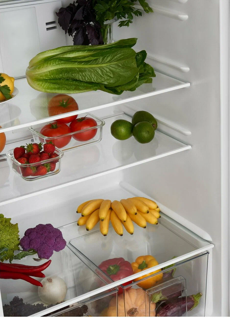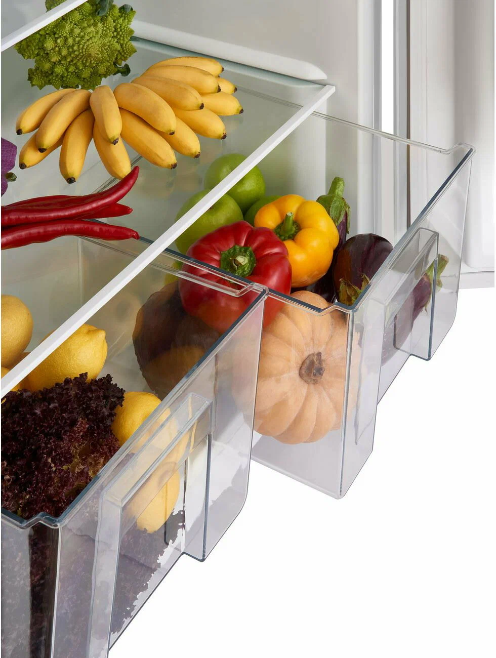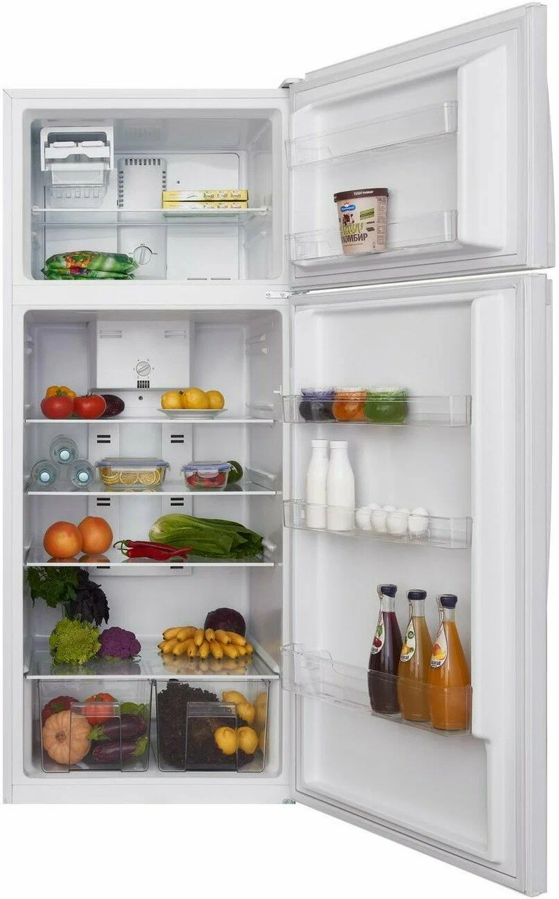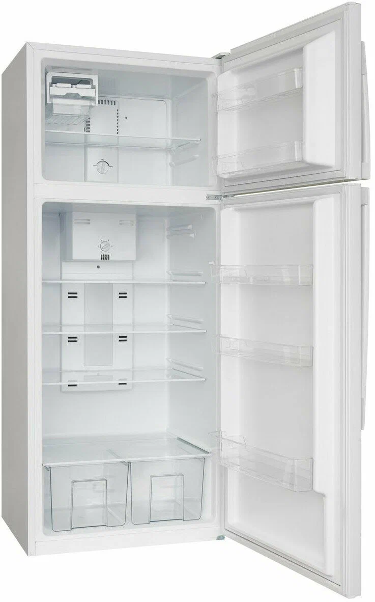 Двухкамерный холодильник с верхним расположением морозильной камеры Холодильник Ascoli ADFRW510W в белом корпусе оснащен системой No Frost в холодильном и морозильном отделениях. Это позволяет избавиться от ручного размораживание, ведь процесс происходит автоматически. Модель предусматривает верхнее расположение морозильной камеры, поэтому пользоваться прибором будет удобно. Общий объем составляет 510 л: 394 литра вместительность холодильного отделения и 116 литра - морозильного. Для разделения пространства в холодильной камере используются прочные полочки из закаленного стекла, а также ящики, в которые можно положить фрукты и овощи