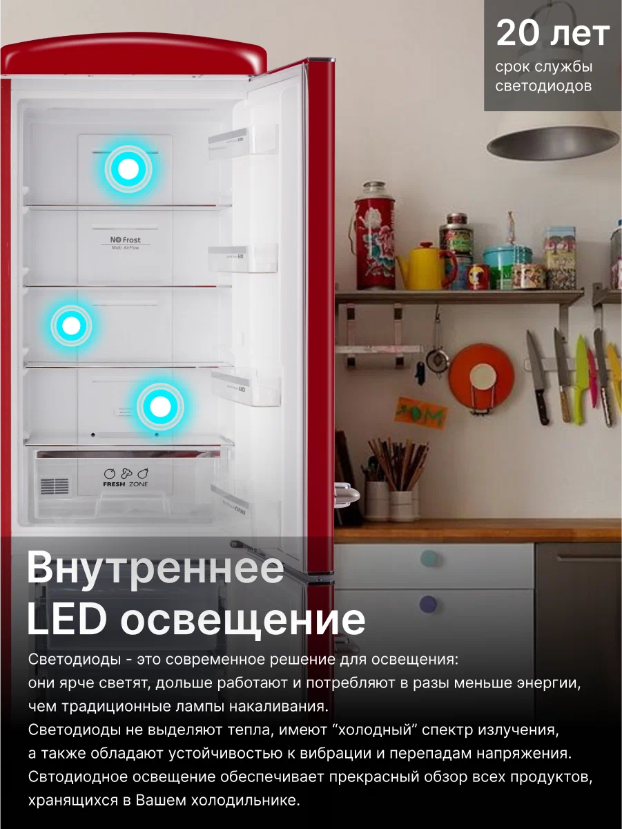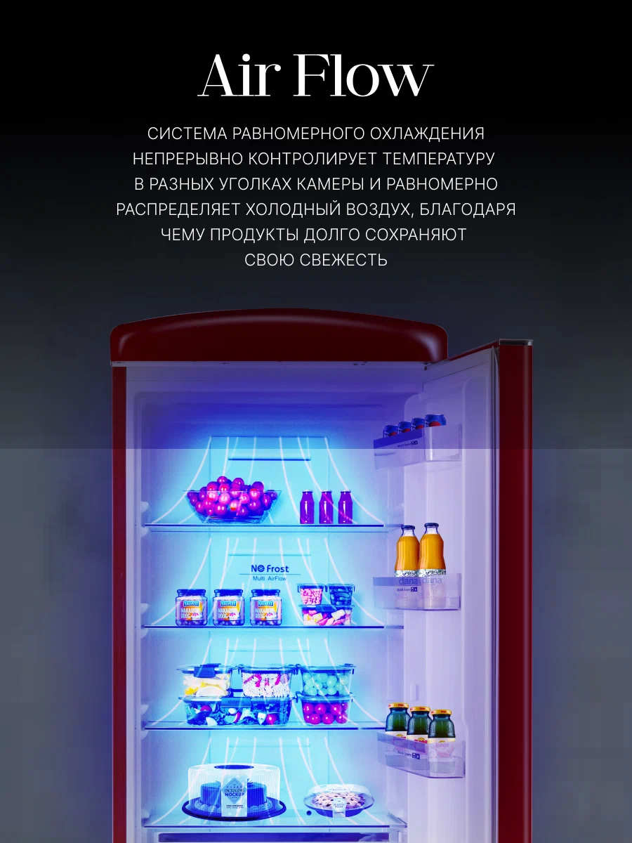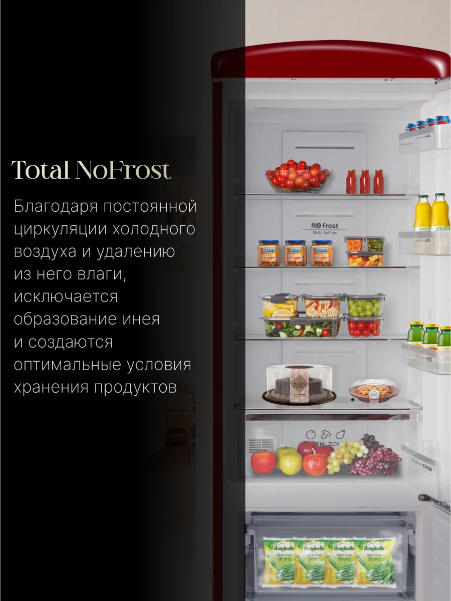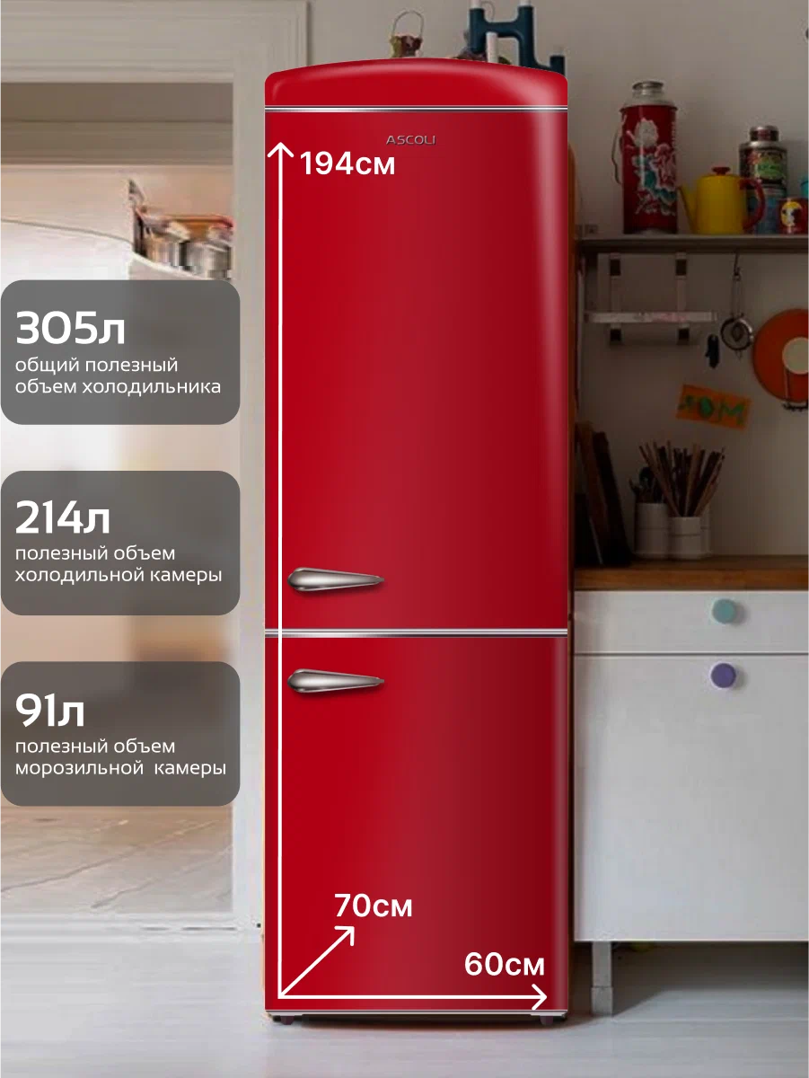 Общие данные: Размеры: высота (см): 194,3 ширина (см): 59,7 глубина (см): 70,7 Общий объем/ Полезный объем: Холодильника (л): 375/305 Холодильной камеры (л): -/214 Морозильной камеры (л): -/91 Тип управления: электронный Класс энергопотребления: A+ Климатический класс: SN-ST (от +10°С до +38°С) Количество компрессоров: 1 Годовое потребление энергии: 288 кВтч Цвет: красная эмаль Холодильное отделение: Полки из закаленного стекла Полка для 2л бутылок на двери Многопоточная система охлаждения Multi Air Flow - равномерная температура на всех полках Система No Frost (Frost Free, Ноу Фрост) Светодиодное освещение Быстрое охлаждение Ящик для овощей Морозильное отделение: Система No Frost (Frost Free, Ноу Фрост) Мощность замораживания: 4,5 кг/24 ч Функция быстрой заморозки 3 ящика Дополнительная информация: Регулировка ножек по высоте Уровень шума: 42 дБ