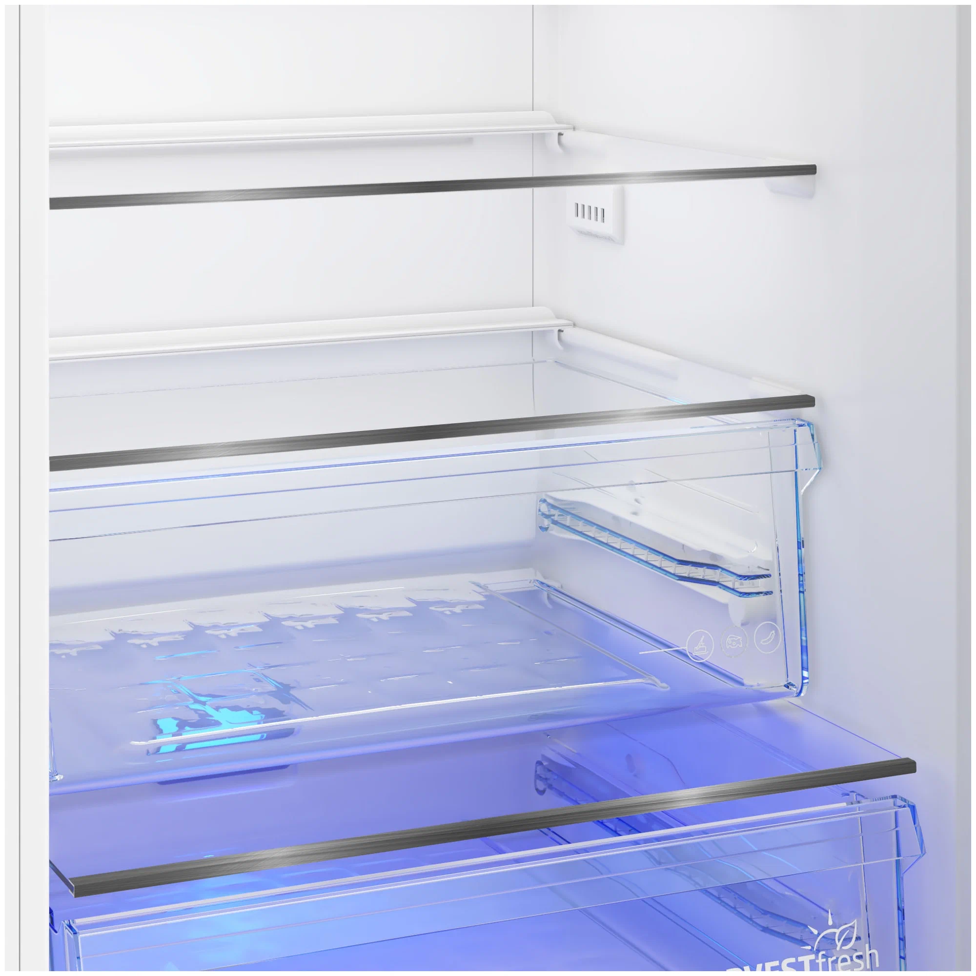 Инновационная технология 3-х цветов от Beko внутри отделения для фруктов и овощей воссоздает природный световой цикл, сохраняя витамины дольше.