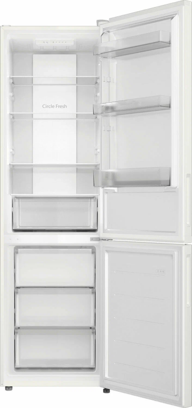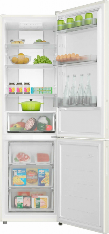 Отдельностоящий двухкамерный холодильник с нижним расположением морозильной камеры Общие данные: Размеры: высота: 200 см ширина: 59.5 см глубина: 59 см Общий объем/ Полезный объем: Холодильника (л): -/334 Холодильной камеры (л): -/243 Морозильной камеры (л): -/91 Тип управления: электронный Класс энергопотребления: A Климатический класс: SN-ST (от +10°С до +38°С) Количество компрессоров: 1 Годовое потребление энергии: 391 кВтч Цвет: бежевый Холодильное отделение: 4 полки из закаленного стекла 3 полки на двери Система No Frost (Frost Free, Ноу Фрост) Светодиодное освещение Функция суперохлаждения Ящик для овощей и фруктов Подставка для яиц Морозильное отделение: Система No Frost (Frost Free, Ноу Фрост) Мощность замораживания: 12 кг/сутки 3 ящика Форма для льда Дополнительная информация: Тип компрессора: Стандартный Вес нетто (кг): 64 Сигнал открытой двери Уровень шума дБ (А): 39 Тип хладагента: R600a Перенавешиваемые двери Сигнализация превышения температуры в морозильной камере