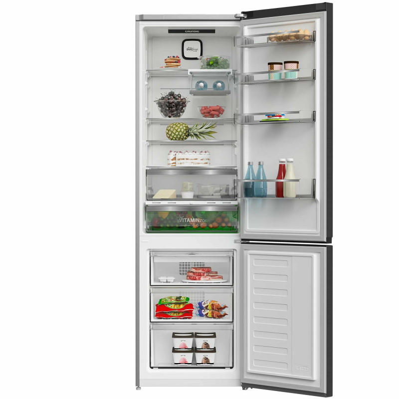 Стильный двухкамерный холодильник с нижней морозильной камерой и сенсорным дисплеем на двери. Благодаря системе Duo-Cooling No Frost холодильник не нужно размораживать, а запахи между камерами не смешиваются. Инновационная технология трёх цветов VitaminZone в ящике для овощей и фруктов имитирует природный цикл солнечного света, что позволяет сохранять все полезные вещества и вкус свежих продуктов. Боковая LED подсветка гарантирует качественное освещение холодильной камеры, а инверторный компрессор обеспечивает надежную работу, экономное энергопотребление и низкий уровень шума при работе.
