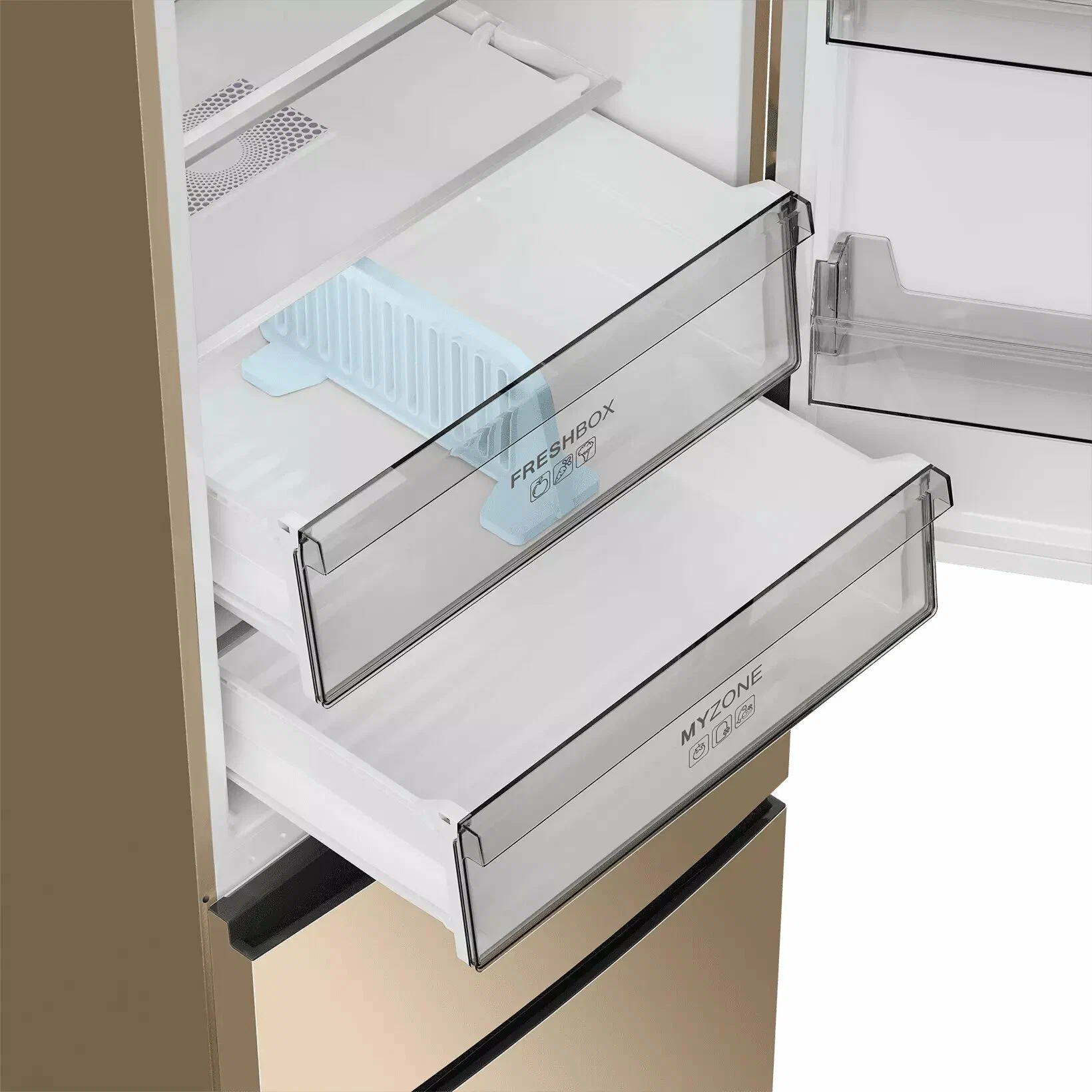 Многокамерный холодильник Haier A4F742CGGU1: золотой цвет и функциональностьМногокамерный холодильник Haier A4F742CGGU1 представляет собой сочетание элегантного золотого цвета и высокой функциональности.Объем и размерыХолодильник Haier A4F742CGGU1 обладает объемом 446 литров, что позволяет хранить большое количество продуктов. Размеры холодильника составляют 190,5 см в высоту, 79,8 см в ширину и 65,2 см в глубину, что делает его удобным для установки даже в небольших кухнях.Особенностью данной модели является инверторный компрессор, который обеспечивает более тихую и экономичную работу холодильника. Благодаря этому, вы сможете наслаждаться тишиной и комфортом на кухне, а также сэкономить на счетах за электроэнергию.Многокамерная система холодильника Haier A4F742CGGU1 позволяет хранить продукты в разных температурных режимах, что обеспечивает их свежесть и сохранность.В целом, многокамерный холодильник Haier A4F742CGGU1 является отличным выбором для тех, кто ценит качество, функциональность и стиль.