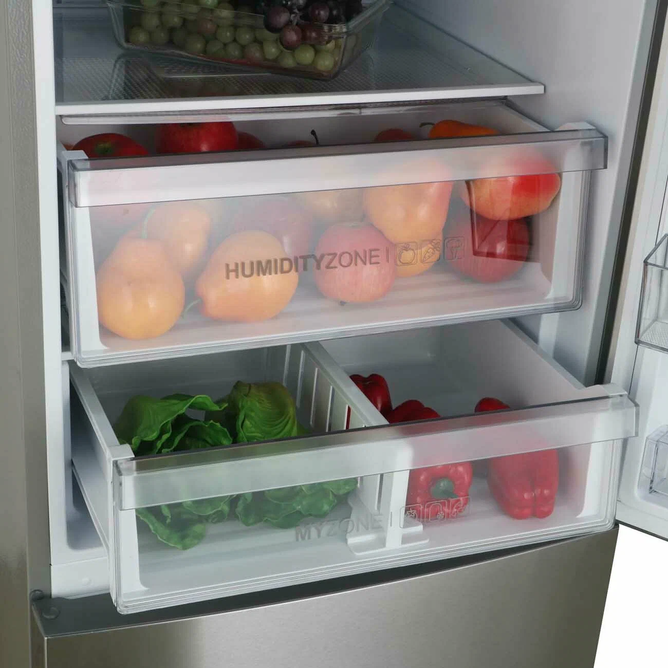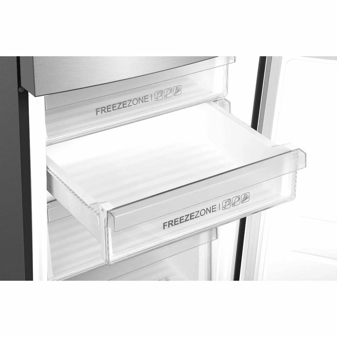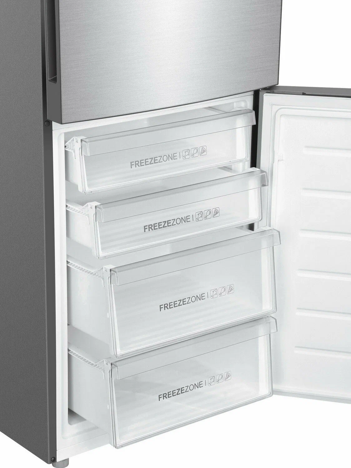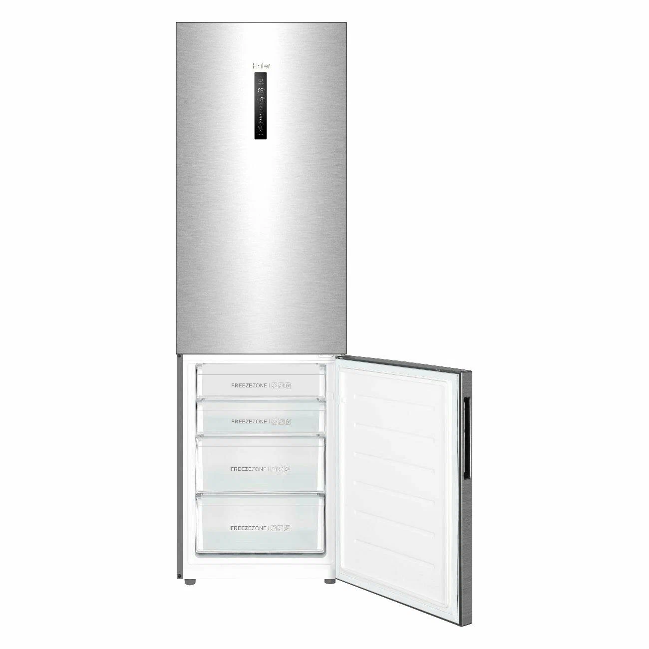 Двухкамерный холодильник Haier C4F640CXU1 с функцией Total No Frost — нет наледи в отделениях, никакого ручного размораживания. Новое поколение имеет увеличенный полезный объем как холодильного, так и морозильного отделения. Оптимальные условия для хранения морепродуктов, охлажденного мяса, сыров и молочных продуктов благодаря нулевой зоне MyZone. Автоконтроль уровня влажности в ящике для овощей и фруктов — мембранная технология HCS. Чтобы продукты хранились дольше и не было неприятных запахов, предусмотрена антибактериальная обработка воздуха. Складная стеклянная полка и складная винная полка в холодильном отделении обеспечивают максимальное удобство и вариативность хранения. Дополнительным преимуществом является возможность управлять холодильником через приложение по Wi-Fi: настройка температуры в холодильном и морозильном отделении, выбор режима в нулевой зоне, активация режимов Супер-охлаждение и Супер-заморозка, универсальный таймер охлаждения напитков и приготовления льда.