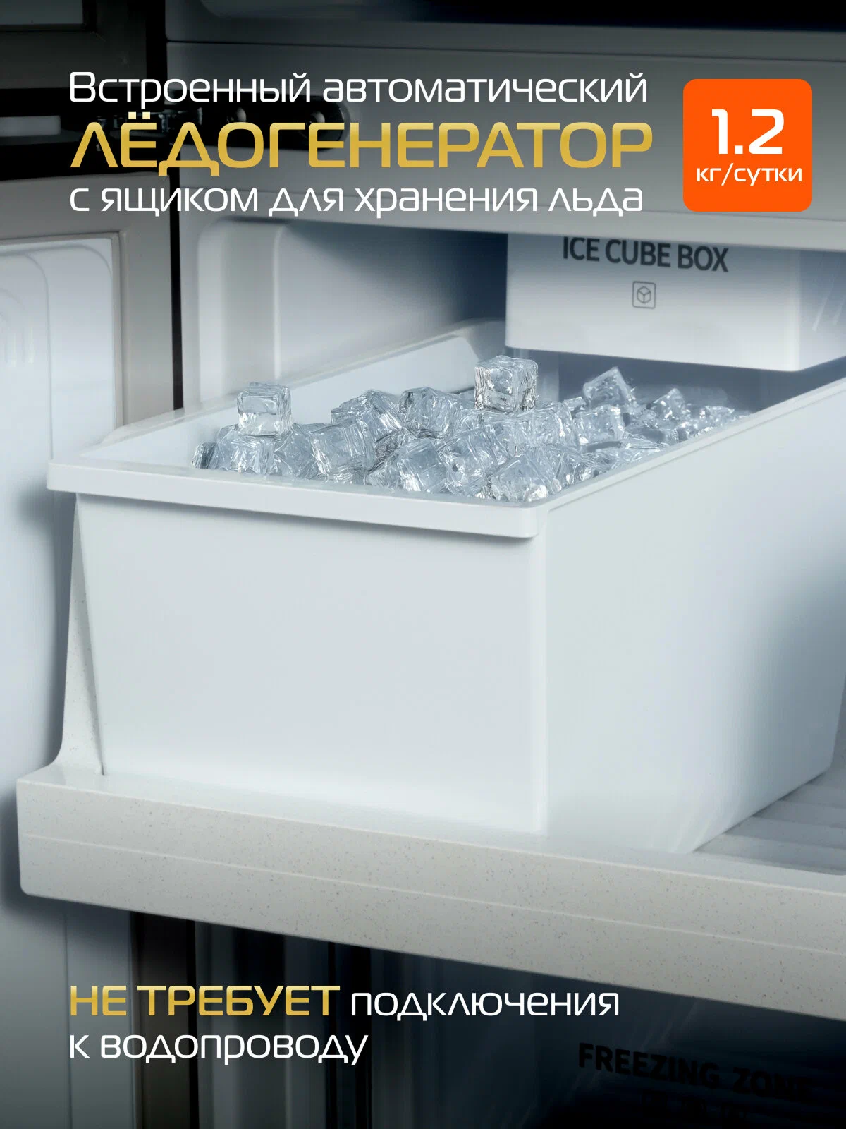 - Дополнительная информация: Ящик с индивидуальной зоной охлаждения в холодильном отделении на 19 л. (от +4 до -4С). Резервуар для подачи воды 1,6 л (в холодильном отделении) для автоматического ледогенератора