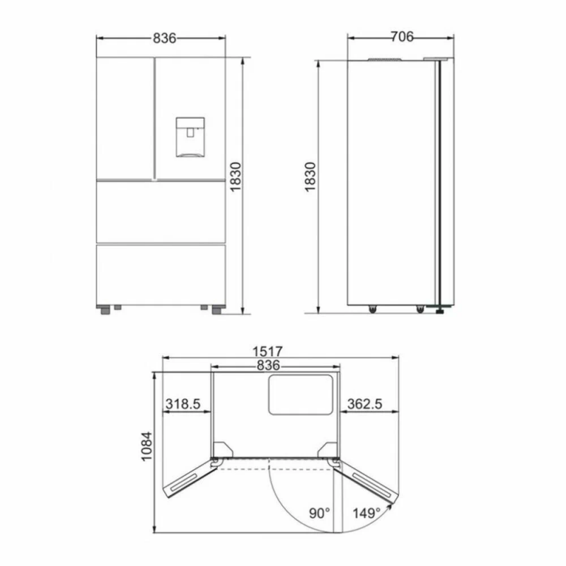 - Размеры (см): В x 183, Ш x 83,6, Г x 70,6