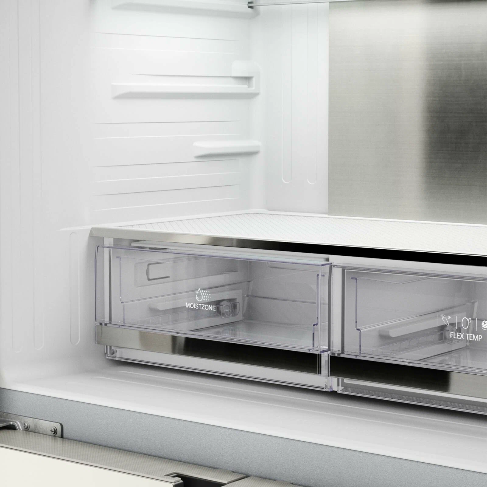 Холодильник отдельностоящий Kuppersberg NFFD 185 IG — это вместительная и функциональная модель с сенсорным управлением. Общий объём холодильника составляет 539 литров, из которых 322 литра приходится на холодильную камеру, а 217 литров — на морозильную. Морозильная камера расположена снизу. Холодильник оснащён 3 стеклянными полками, 6 выдвижными ящиками и 6 навесными дверными полками. Среди дополнительных функций — режим «Отпуск» и LED-дисплей. Уровень шума не превышает 37 дБ, а класс энергопотребления — A++. Климатический класс SN-T позволяет использовать холодильник в широком диапазоне температур от +10 °C до +43 °C. Длина сетевого шнура составляет 240 см. Гарантия на товар — 2 года.