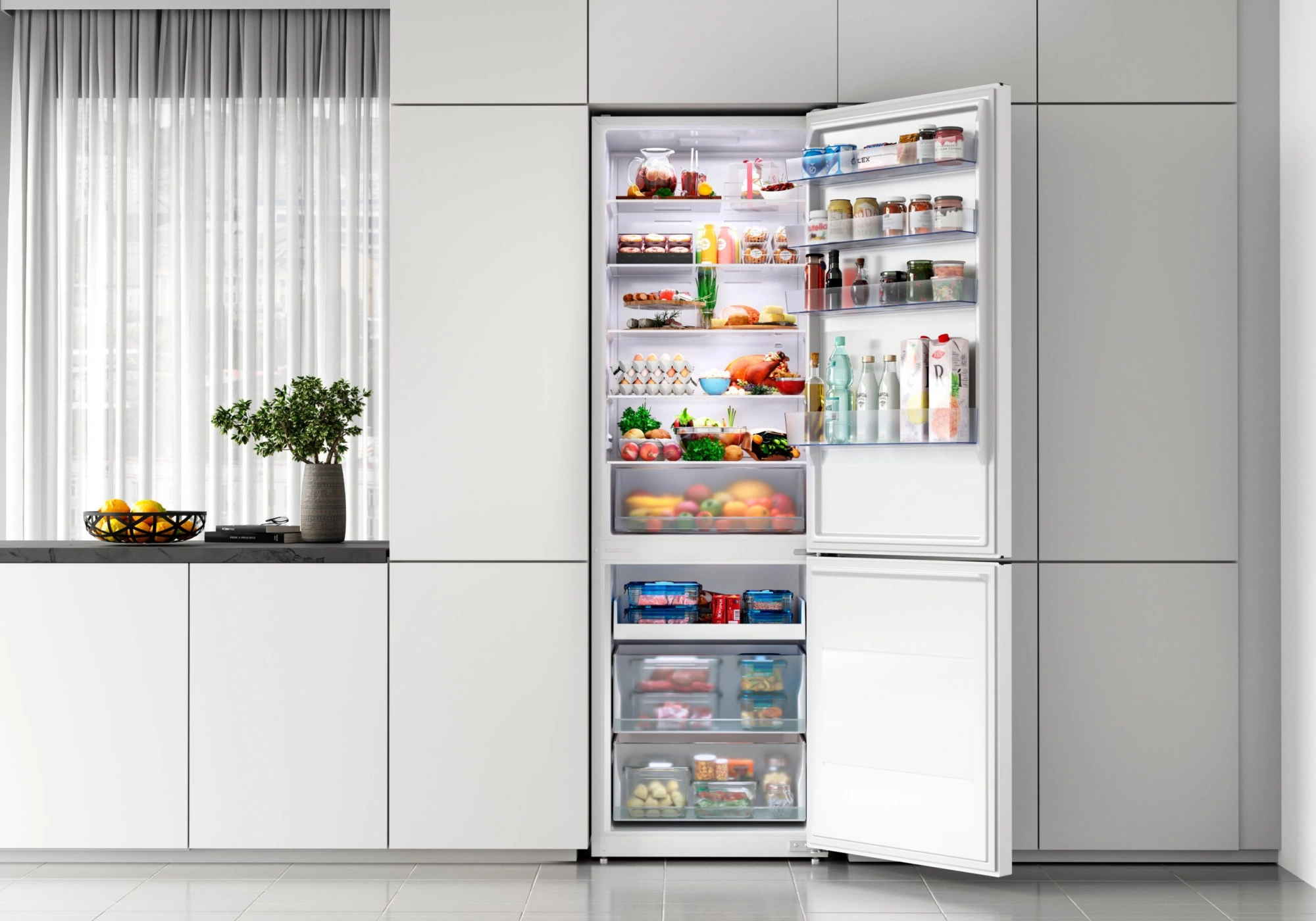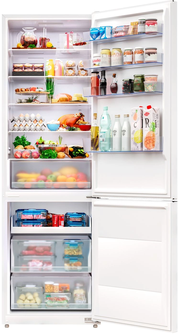 Холодильник LEX LKB201 оснащен современным инверторным компрессором, который гарантирует эффективную и практически бесшумную работу. Он также обеспечивает низкий расход энергии и долго поддерживает температуру без электропитания. Технология Total No Frost значительно упрощает обслуживание и помогает устанавливать оптимальную температуру и влажность. Стильный дизайн модели добавит элегантности в любую кухню. Два отделения с полезным объемом 456 литров дают возможность хранить все блюда и напитки на удобном уровне. Внутреннее пространство холодильника организовано максимально эффективно благодаря регулируемым полкам. LED-лампы обеспечивают яркий свет, помогая вам быстро найти все, что нужно. Электронная панель управления делает настройку параметров интуитивно понятной. А перенавешиваемые двери делают холодильник LEX LKB201 универсальным для любой кухни. Общие данные: Размеры: высота (см): 201 ширина (см): 59.5 глубина (см): 68 Общий объем/ Полезный объем: Холодильника (л): -/456 Холодильной камеры (л): -/314 Морозильной камеры (л): -/142 Тип управления: электронный Класс энергопотребления: A+ Климатический класс: SN-ST (от +10°С до +38°С) Количество компрессоров: 1 Годовое потребление энергии: 359.2 кВтч Цвет: белое стекло Холодильное отделение: 5 полок из стекла Система Nо Frost (Frost Free, Ноу Фрост) Освещение LED Диапазон температур: 2-8 °С Ящик для овощей и фруктов Морозильное отделение: Система Nо Frost (Frost Free, Ноу Фрост) Время сохранения холода при отключении электроэнергии: 10 ч Мощность замораживания: 7 кг/сутки Диапазон температур: –16…–24 °С 2 ящика Дополнительная информация: Уровень шума: 42 дБ Хладагент: R600a Перевешиваемые двери Длина сетевого кабеля: 170 см Вес: 70 кг
