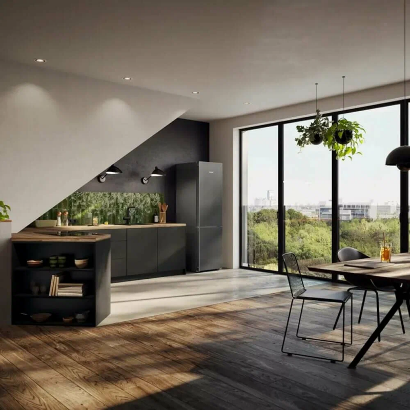 Удобство использования дополняется функциями защиты от детей и блокировкой экрана, что делает его безопасным для семей с маленькими детьми. Система FrostSafe предотвращает потерю температуры при открытии дверцы, а функция Duo Cooling обеспечивает независимое управление температурой в холодильной и морозильной камерах. Уровень шума всего 37 дБ делает его практически бесшумным, что особенно важно для открытых кухонных пространств. Возможность перевешивания дверей и наличие доводчика SoftSystem добавляют гибкости в установке и использовании устройства. Встроенный ледогенератор EasyTwist с емкостью для воды позволяет наслаждаться прохладными напитками в любое время.