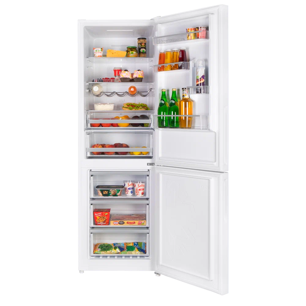 Двухкамерный холодильник объемом 340 л и высотой 185 см с сенсорным управлением. Корпус шириной 60 см сделан из нержавеющей стали. Фасады дверей - из закаленного стекла цвета белый перламутр. Внутренняя часть выполнена из антибактериального белого пластика легкой очистки. Предусмотрена возможность перенавешивания двери. В холодильной камере (полезный объем 240 л) находятся: 3 стеклянные полки с металлической окантовкой 2 большие корзины для фруктов и овощей 4 боковые полки на дверце решетка для бутылок 2 лотка для яиц В морозильной камере (полезный объем 100 л): 3 выдвижных ящика формочка для льда Дисплей с сенсорным управлением находится на передней панели холодильника. Вы можете выбрать: температуру холодильника (+2°C до +8°C) температуру морозилки (-16°C до -24°C) функцию «Быстрая замораживание» функцию «Отпуск» функцию «Смарт ЭКО» Дополнительные функции, увеличивающие срок службы вашего морозильника: сигнализация, срабатывающая при долго открытой двери сигнализация при повышении температуры морозилки выше -10°С вывод кода ошибки на дисплей при сбое работы Система охлаждения всего холодильника - «No Frost». При использовании данной технологии, холодный сухой воздух равномерно распределяется при помощи вентилятора по всей камере. Благодаря этому на продуктах и внутренних поверхностях прибора не образовывается иней. Теперь вам никогда не придется размораживать холодильник. Климатический класс холодильника - ST. Это указывает на то, что он выполняет свои функции при температуре окружающей среды от +16°C до +38°С. Уровень шума при работе компрессора составляет всего 35 Дб, что дает возможность использовать холодильник в кухне-гостиной. Класс энергопотребления: A++. В комплекте: 3 полки, 4 ящика, полки в двери, поддоны для яиц, формочка для льда, решетка для бутылок. Система разморозки: NoFrost Тип компрессора: Инверторный Общий объём, л: 340 Полезный объём, л: 317 Общий объём холодильной камеры, л: 240 Общий объём морозильной камеры, л: 100 Высота, мм: 1855 Глубина, мм: 642 Ширина, мм: 595 Уровень шума, дБ: 42 Тип управления: Сенсорное Класс энергетической эффективности: A+ Энергопотребление, кВтч/год: 244 Тип освещения: LED Количество ящиков холодильной камеры: 1 Количество полок холодильной камеры: 3 Количество боковых полок: 4 Цвет: Белый Материал фасада: Стекло Материал корпуса: Металл Расположение морозильной камеры: Снизу Мощность замораживания кг/в сутки: 4,5 Климатический класс: ST Хладагент R: R600A Вес товара без упаковки (нетто), кг: 69 Вес товара (брутто), кг: 75