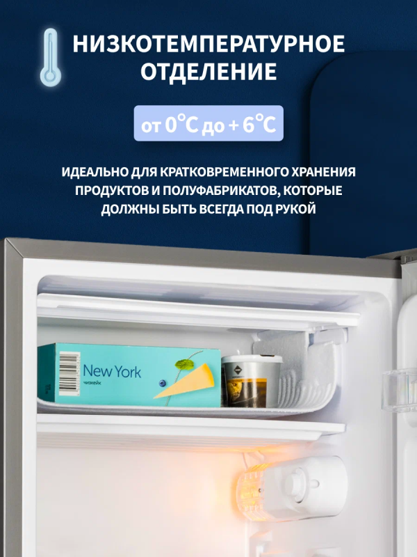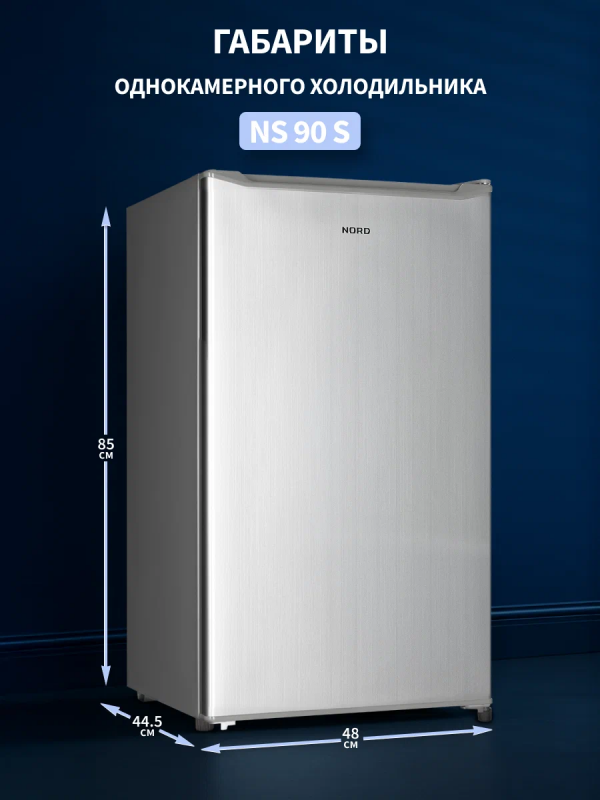 Однокамерный холодильник c низкотемпературным отделением NORD NS 90 S имеет общий объем 92 литров и высоту 85 см.Благодаря компактным размерам и удобной внутренней организации холодильник NORD станет оптимальным решением для размещения в гостинице, отеле, офисе, общежитии или на даче.Модель порадует системой размораживания Defrost, высоким классом энергоэффективности А и низким уровнем шума до 41 дБ.Холодильник имеет 7 режимов работы и регулируемый термостат. Диапазон температурного режима в холодильной камере от +2°С до +8°С, а в НТО от 0°С до +6°С.Низкотемпературное отделение подходит для кратковременного хранения замороженных продуктов, полуфабрикатов.Эргономика внутреннего пространства холодильника включает одну полку из закаленного стекла и отделение для овощей и фруктов с крышкой-полкой.Дверь имеет возможность перенавешивания на другую сторону для комфортного открывания и установки модели в удобном месте. Корпус холодильника выполнен в серебристом цвете.Особенности и преимущества:- объем 92 л;- высота 85 см;- класс энергоэффективности А;- наличие НТО;- система оттаивания Defrost;- перенавешиваемая дверь;- цвет: серебристый.Гарантия на холодильник NORD - 2 года.