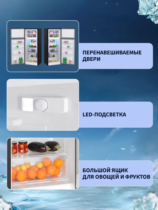 Двухкамерный отдельностоящий холодильник NORD NRT 141 32 с верхним расположением морозильной камеры имеет общий объем 261 л.В данной модели предусмотрена капельная система размораживания в холодильной камере и ручная – в морозильной.Устройство работает на изобутане R600а и характеризуется высоким классом энергоэффективности А+.Полезный объем морозильника, расположенного в верхней части – 51 л. Объем холодильной камеры составляет 209 л.Для большего комфорта в холодильной камере имеется LED-освещение, которое включается автоматически при открывании двери и не нагревает внутреннее пространство холодильника.Ламинированная внутренняя поверхность устройства имеет антибактериальное покрытие.Для эргономики внутреннего пространства в холодильной камере предусмотрены 4 полки из закаленного стекла и выдвижной ящик для овощей и фруктов, а также 4 полки на двери.В морозильной камере также предусмотрена 1 полка.Гарантия на холодильник NORD – 2 года.