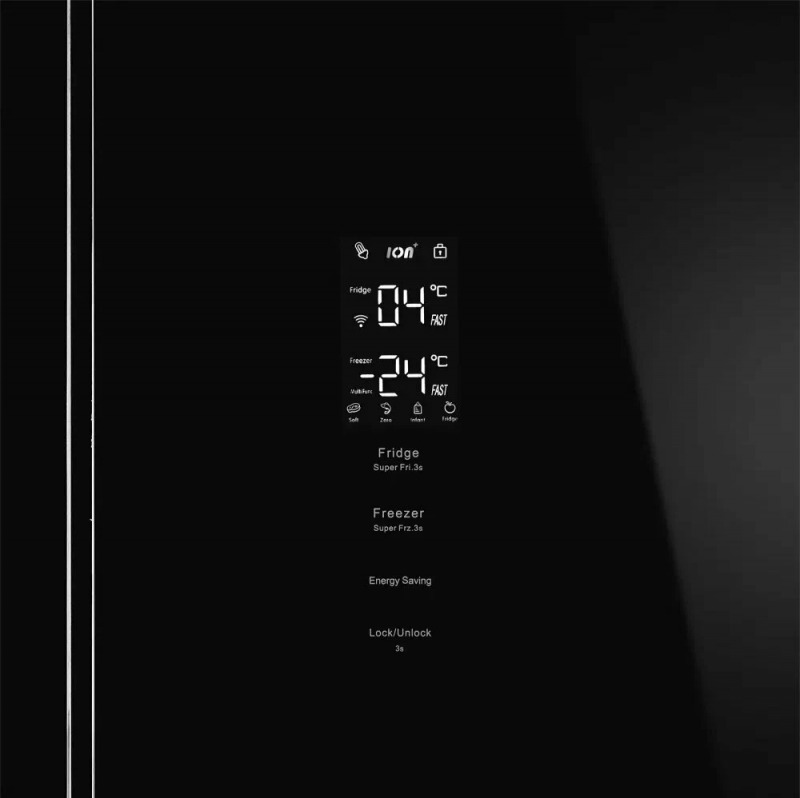 Холодильник обладает вместительным полезным объемом в 475 литров, что позволяет хранить большое количество продуктов. Он оснащен сенсорным управлением и дисплеем, что делает его использование максимально удобным. Функции суперохлаждения и суперзаморозки позволяют быстро охлаждать и замораживать продукты, сохраняя их свежесть и вкус.
