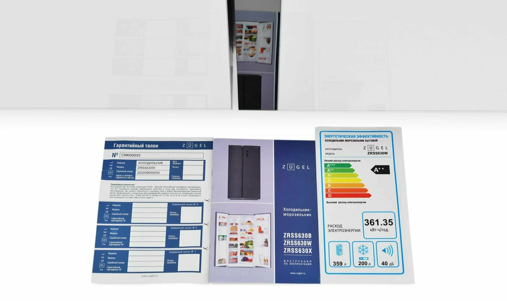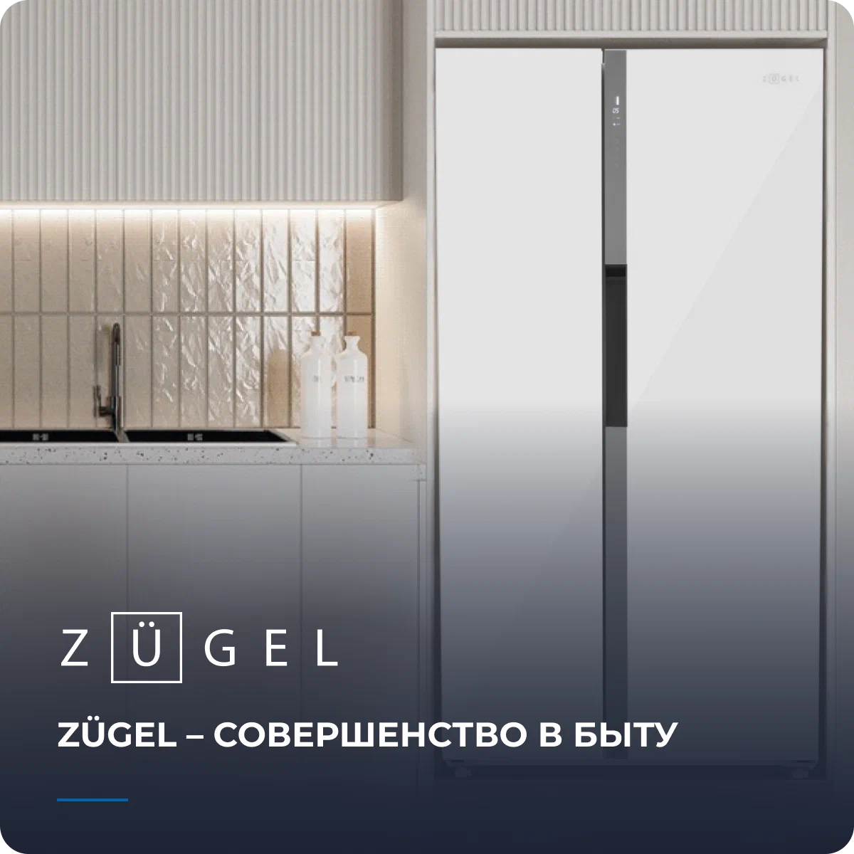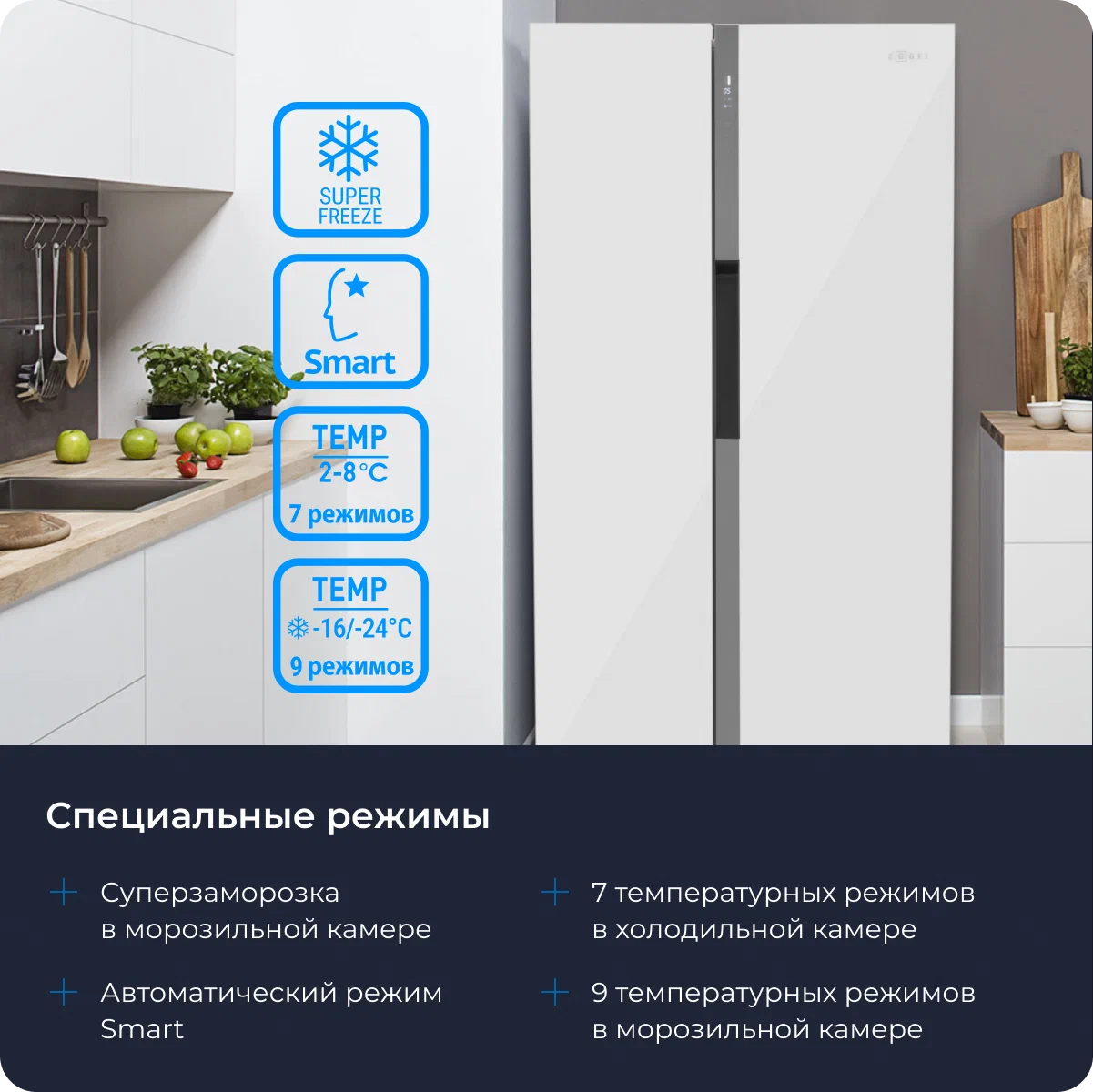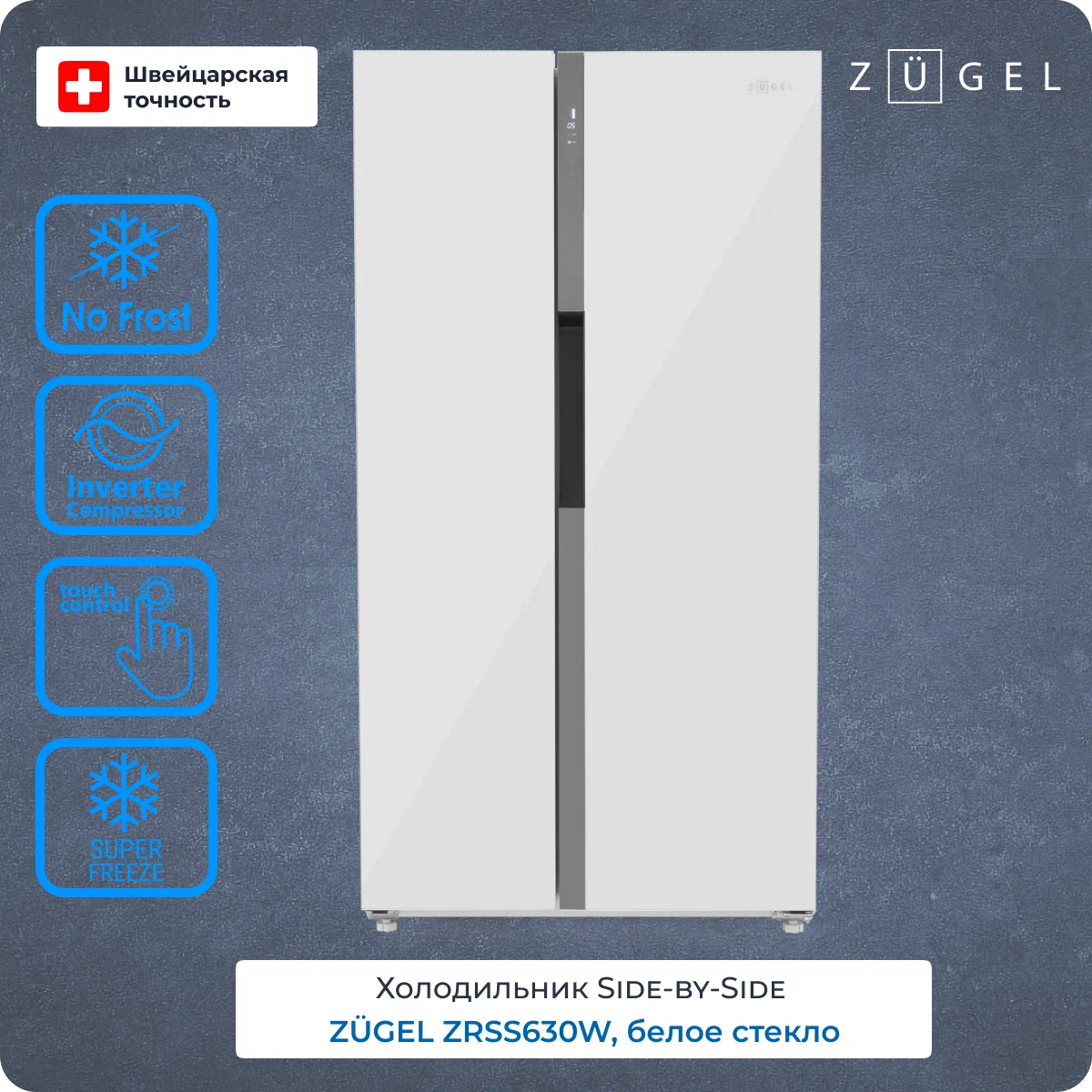 Холодильник Side-by-Side Zugel ZRSS630W, белое стекло