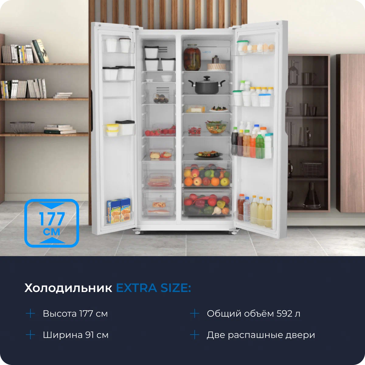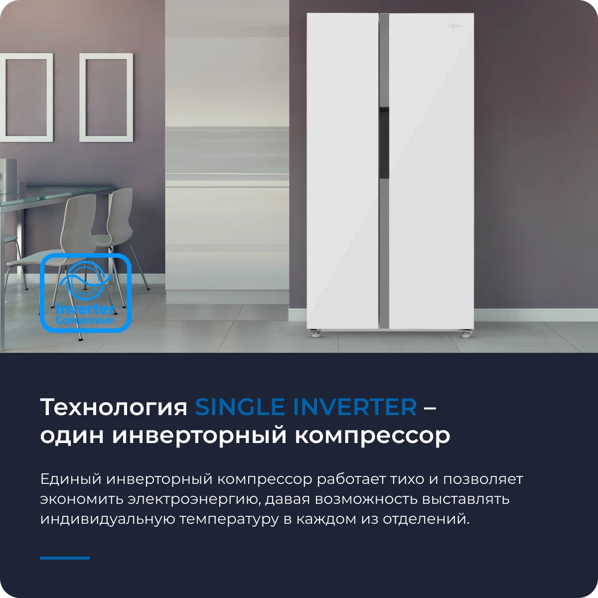 • Морозильная камера: Side by Side (сбоку)