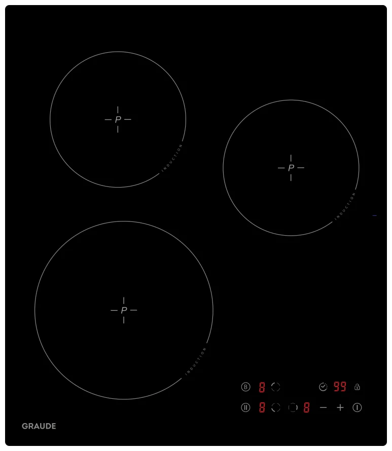 "Особенности дизайна: Варочная панель Graude IK 45.0 S выполнена в универсальном черном цвете. Благодаря небольшому размеру (ширина — 45 см) установить модель можно в небольшой кухне.