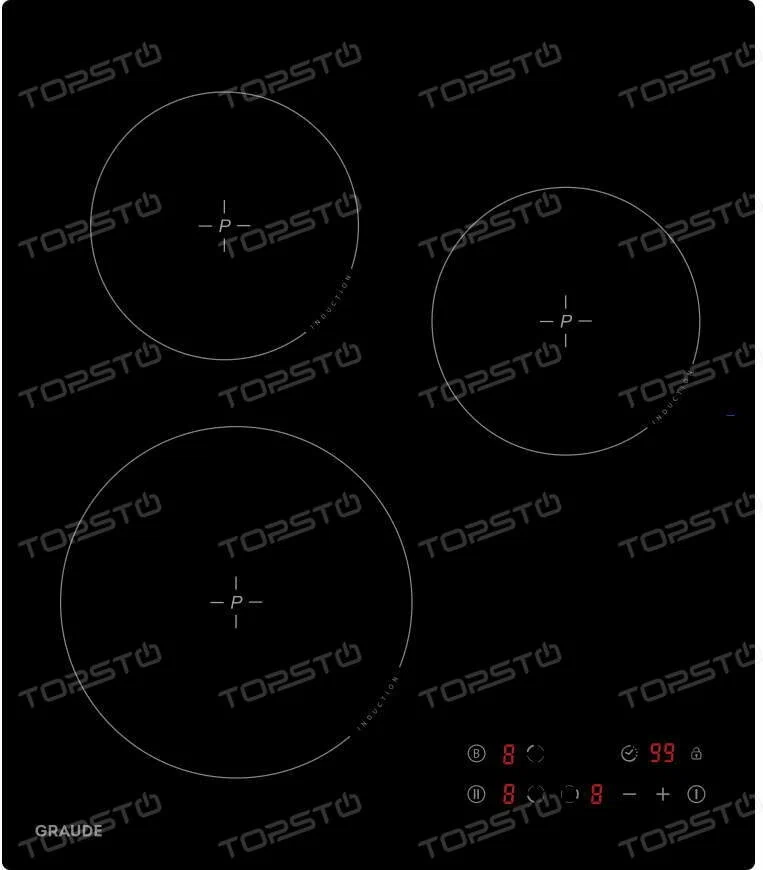 Преимущества: Удобное сенсорное управление упрощает настройку параметров работы прибора. Автоматическое отключение, индикаторы остаточного тепла и защита от детей обеспечивают безопасность эксплуатации."