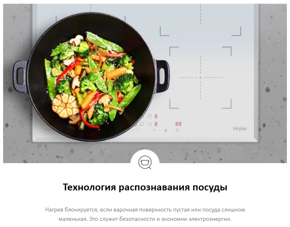 • Дополнительная информация: распознавание наличия посуды; 9 уровней мощности