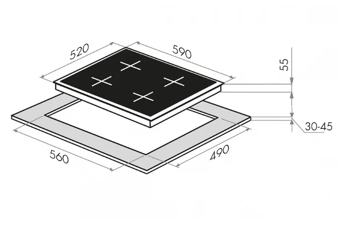 Размеры для встраивания (ШхГ): 56 x 49 см