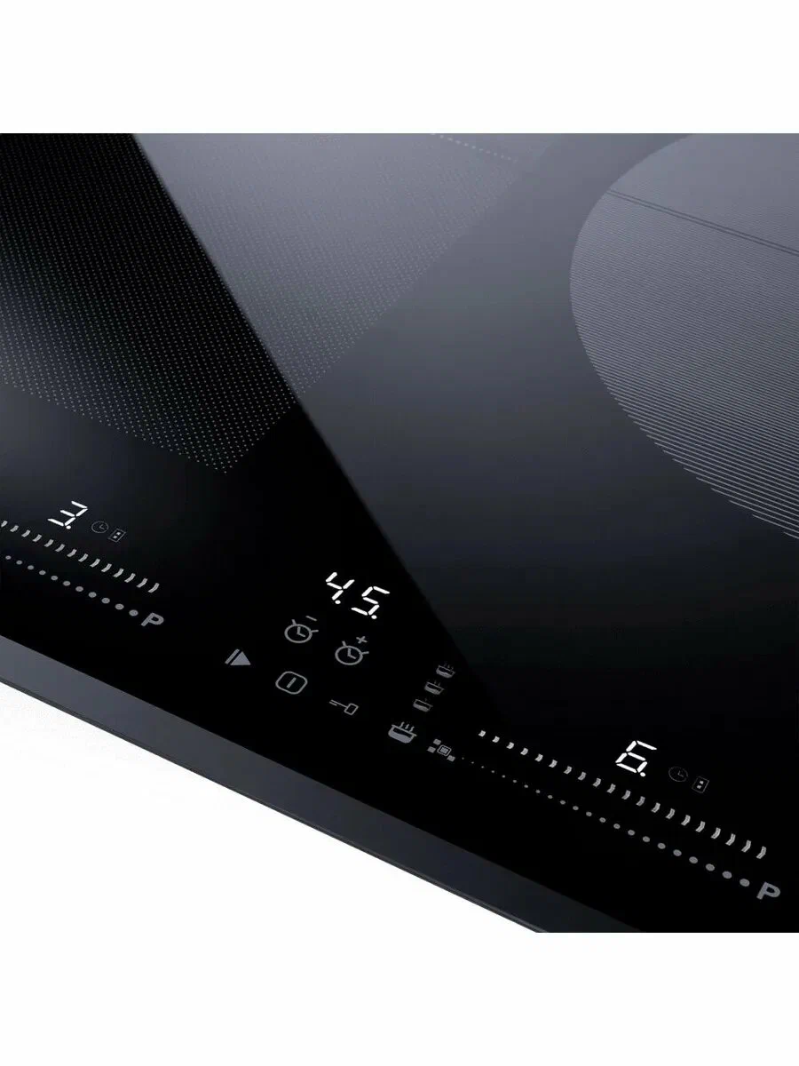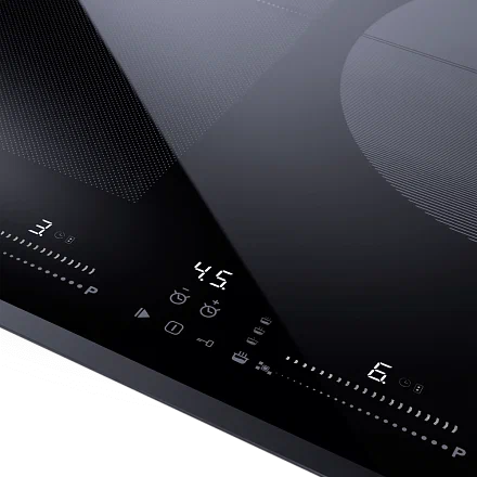 Для обеспечения безопасности предусмотрены функции автоматического отключения, блокировки от детей и индикатор остаточного тепла. Индикатор наличия посуды и вывод сообщения об ошибке помогут избежать ненужных проблем и упростят эксплуатацию панели. Максимальная потребляемая мощность электрических конфорок составляет 7200 Вт, что обеспечивает высокую производительность при низком энергопотреблении.