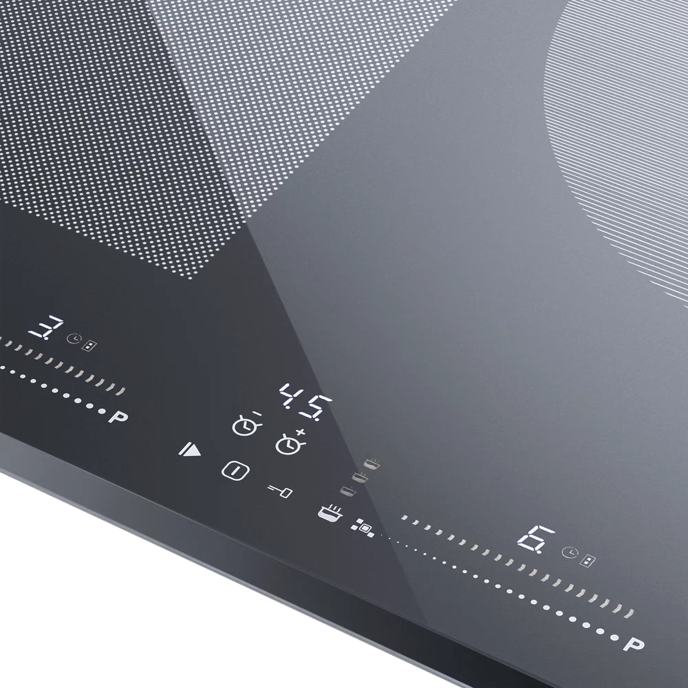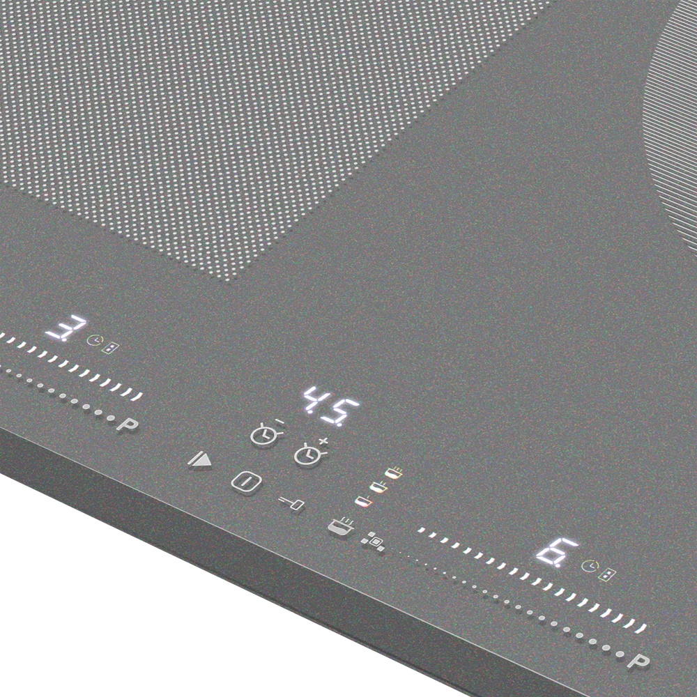 Особенности управления включают сенсорные элементы и слайдер, обеспечивающий плавную регулировку мощности. Функция детектора диаметра посуды автоматически определяет размер используемой посуды и подстраивает зону нагрева под нее. Это не только увеличивает эффективность приготовления, но и снижает энергопотребление. Панель выполнена из стеклокерамики серого цвета в стиле Модерн, что придает ей элегантный и современный вид. Для безопасности использования панель оснащена функцией блокировки от детей, индикатором остаточного тепла, автоматическим отключением и защитой от перегрева. В случае мокрой поверхности все элементы автоматически блокируются. Все эти функции, вместе с инверторной технологией и максимальной потребляемой мощностью электрических конфорок 7200 Вт, делают использование этой варочной панели максимально комфортным и безопасным.
