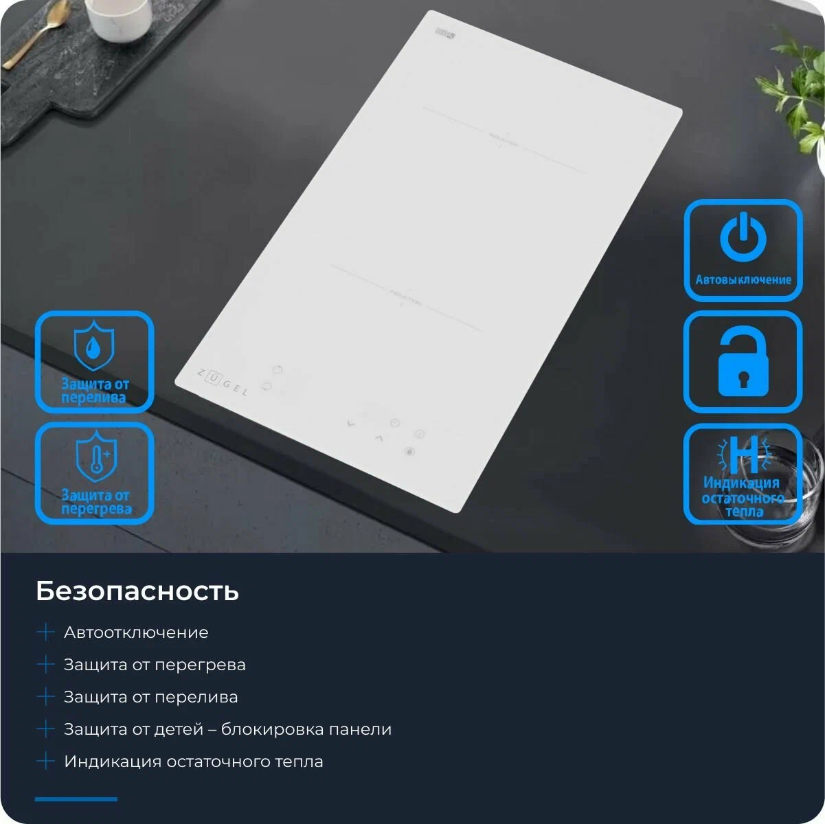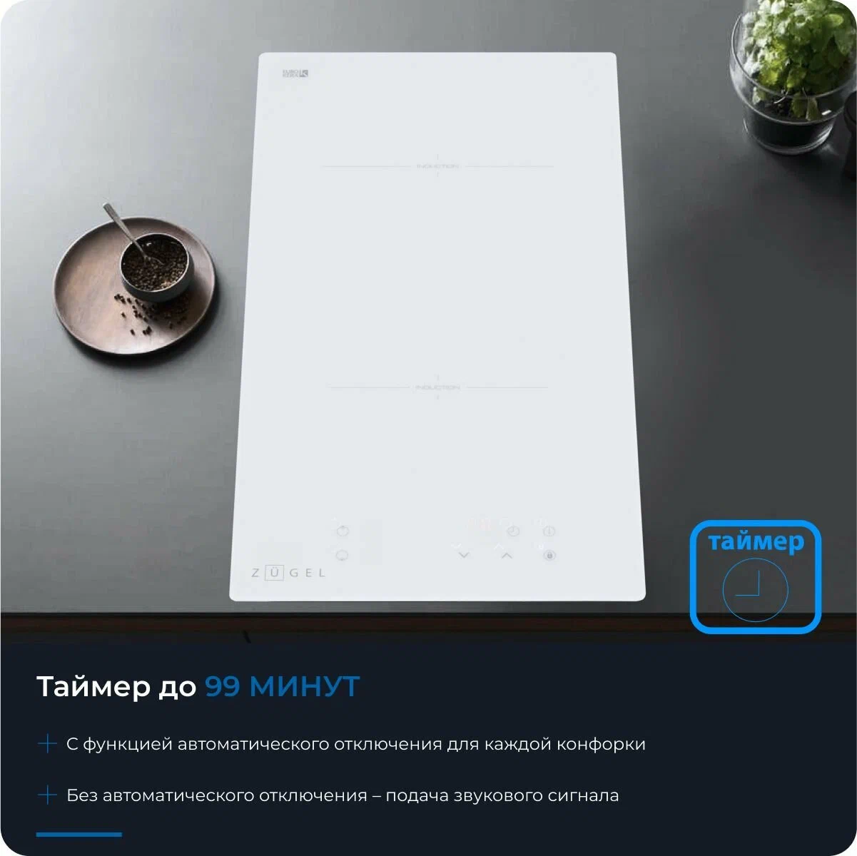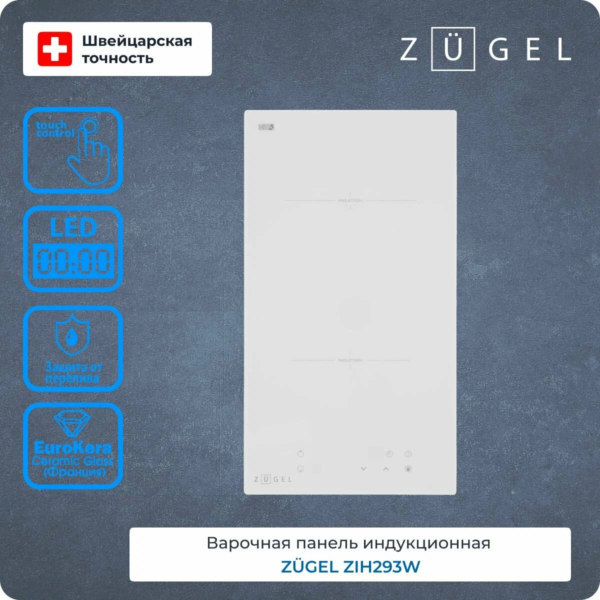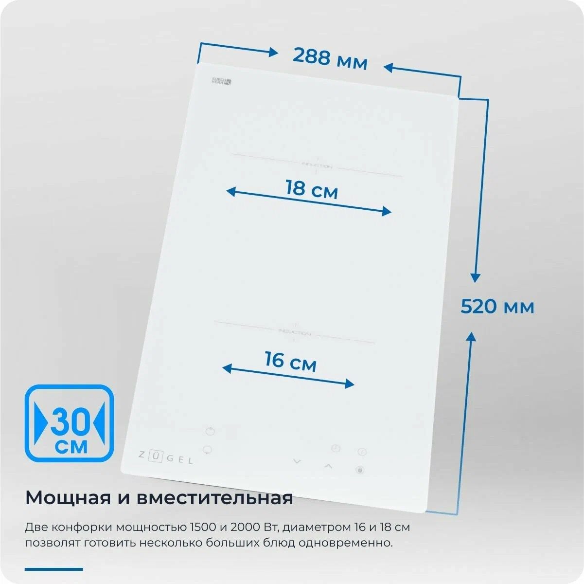 Общие данные:Габариты: 6х28.8х52 смГабариты ниши для встраивания: -х26.8х50 смТип конфорок: 2 индукционныеЗоны расширения: нетМощность конфорок:1 x 1500 Вт/empty; 160 мм1 x 2000 Вт/empty; 180 ммИндикаторы остаточного тепла для каждой конфоркиУправление:Сенсорное управление/Кнопки9 ступеней мощностиРаспознавание наличия посудыТаймер с функцией автоматического отключения для каждой конфоркиТаймер без отключения конфорки (со звуковым сигналом)Индикация мощностиБезопасность:АвтоотключениеЗащита от перегреваЗащита от переливаБлокировка (Защита от детей)Дополнительная информация:Высококачественная стеклокерамика EuroKera (Франция)Подключаемая мощность: 3500 ВтМинимальная толщина столешницы для встраивания 30 мм