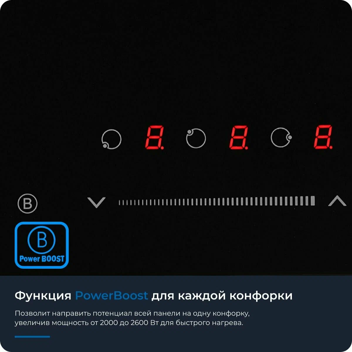 • Особенности: блокировка от детей, индикаторы остаточного тепла
