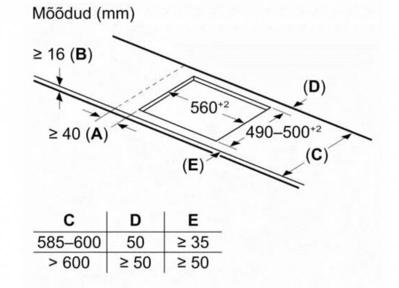 - Ширина встраивания: 560 мм