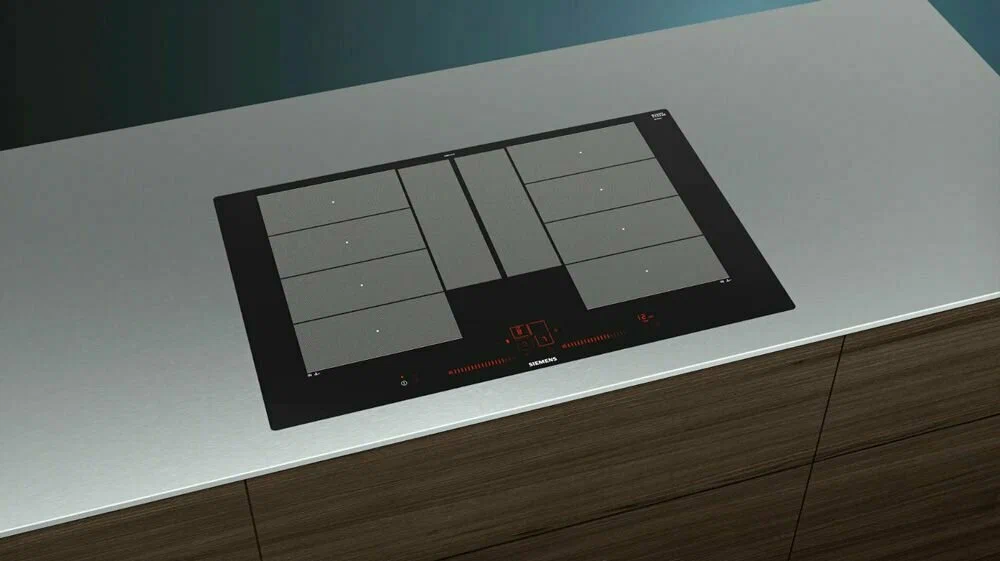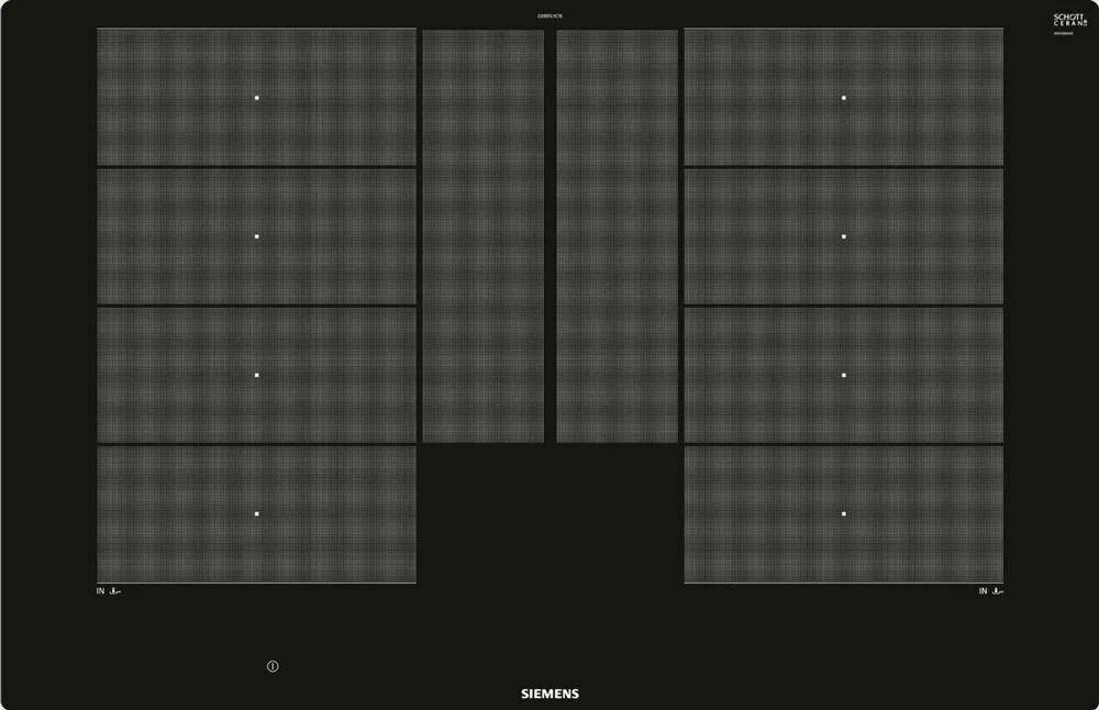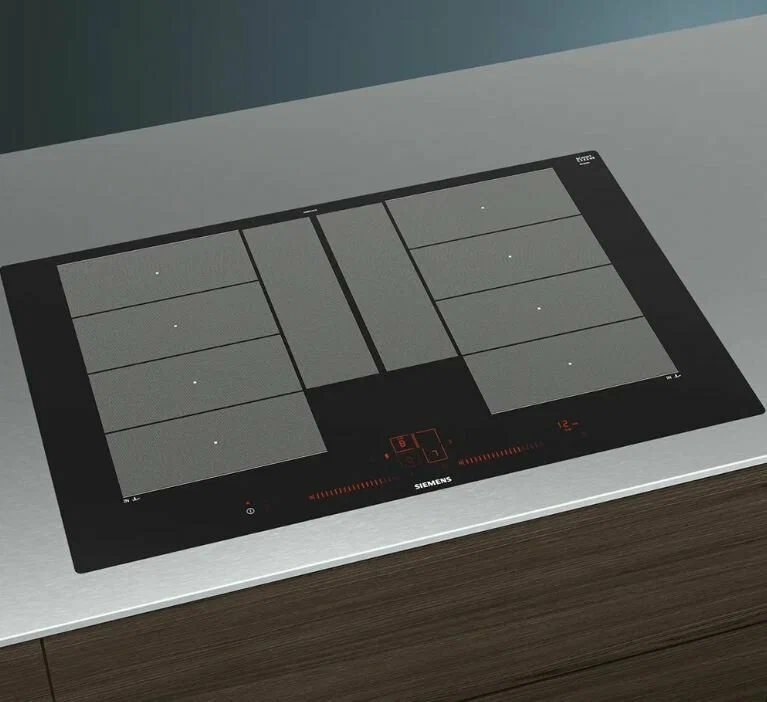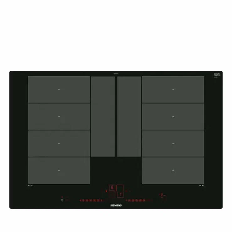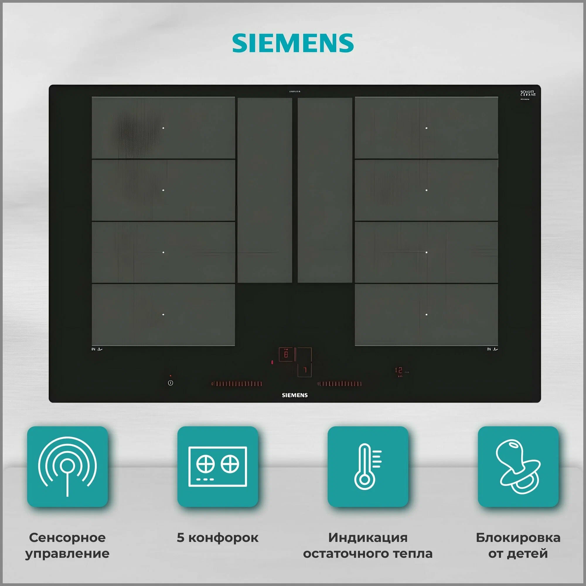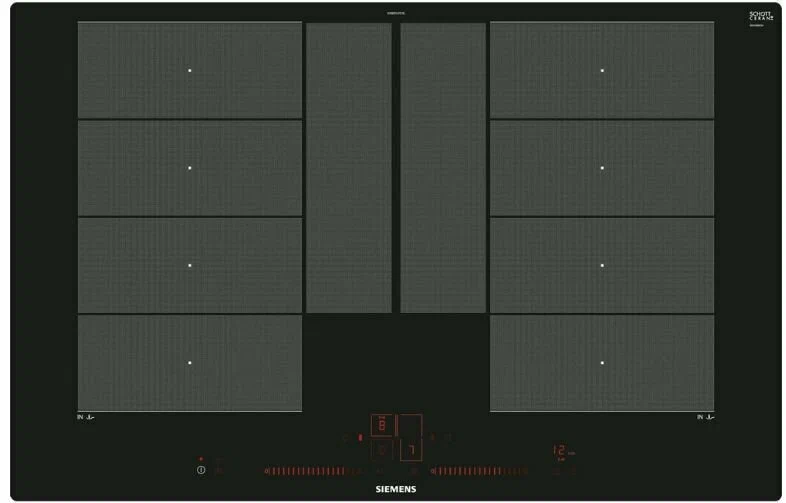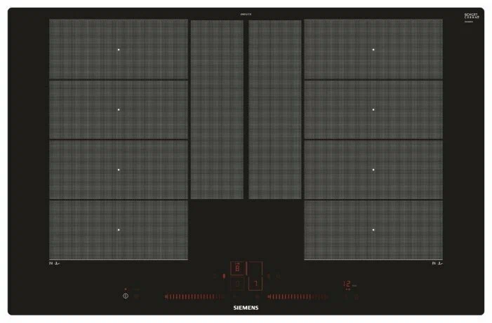Индукционная варочная панель Siemens EX801LYC1E установка в уровень со столешницей нагревает дно посуды, а не поверхность под посудой, что делает ее безопасной. Стеклокерамическая рабочая поверхность варочной панели выдерживает большие нагрузки и почистить ее можно без дорогостоящих моющих средств. Пять конфорок и инновационные функции встраиваемой EX801LYC1E превратят приготовление блюд в кулинарное искусство.Сенсорное управление Touchscreen и цветной TFT-дисплей создают комфортное управление и простое настраивание требуемого уровня мощности. Функция quickStart автоматически определяет конфорку, на которой есть посуда при включении варочной панели. Запрограммировать время приготовления блюда возможно с функцией «Таймер». По прошествии заданного времени зона нагрева автоматически отключается. С функцией PowerBoost можно существенно увеличить мощность зоны индукционного нагрева для быстрого нагрева. Зона CombiZone объединяет зоны нагрева для посуды по типу жаровен. Зона FlexInduction: возможность объединять несколько прямоугольных конфорок в одну большую, позволяя использовать посуду очень больших размеров или несколько небольших кастрюль одновременно.