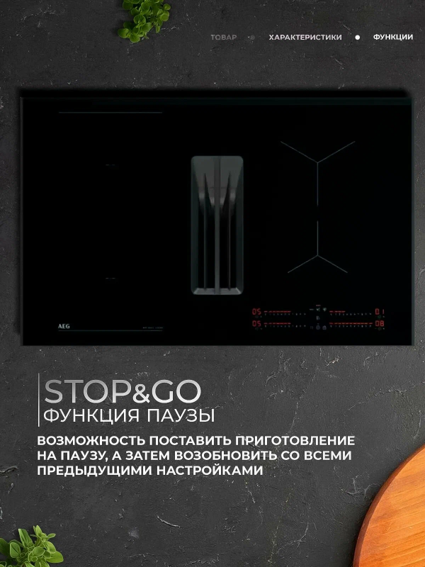 Элегантная чёрная стеклокерамика и матовые акценты формируют сдержанный, премиальный образ, который легко впишется в любую современную кухню. Гладкая поверхность проста в уходе — следы удаляются быстро и без разводов.