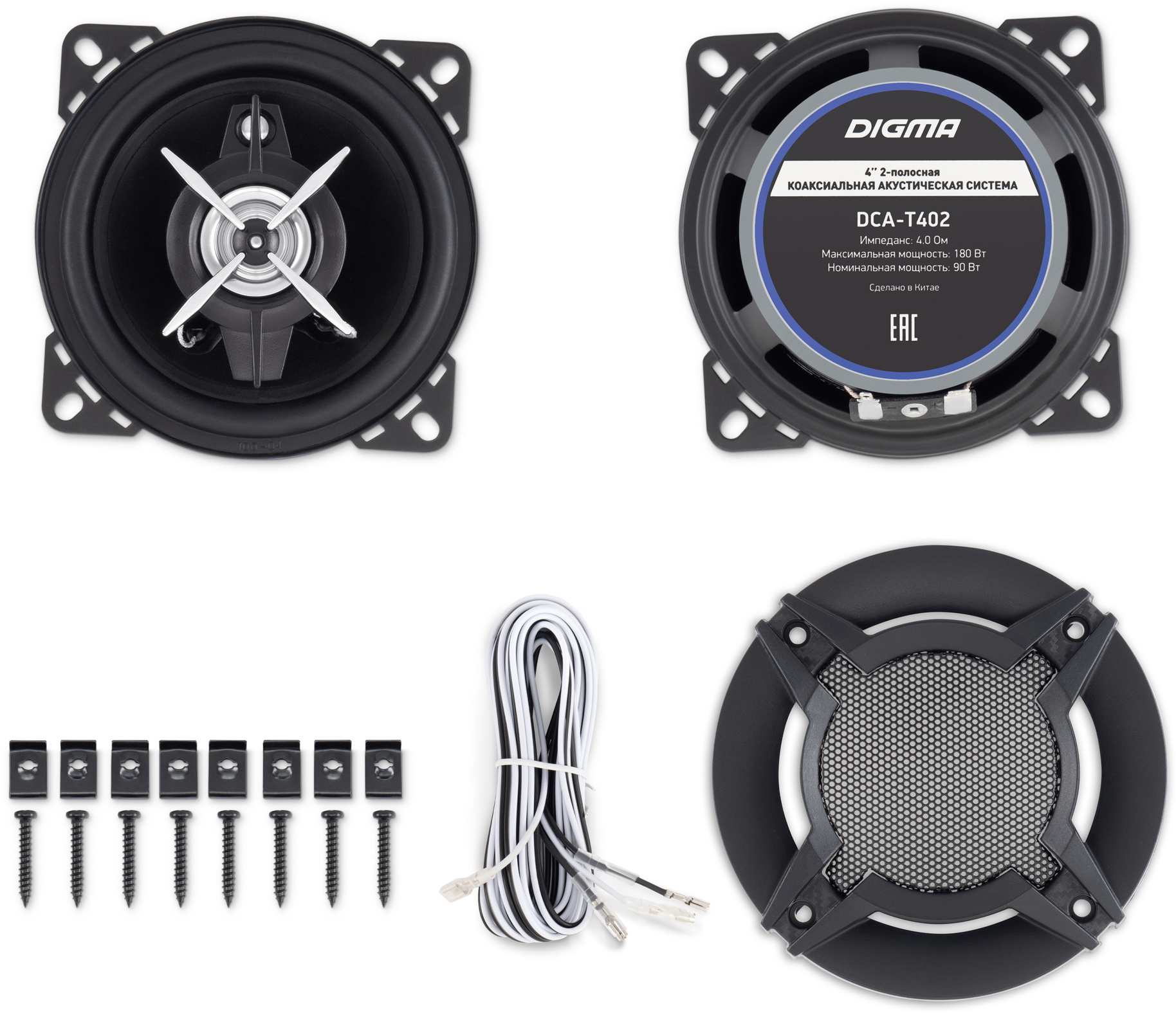 Бренд: DIGMA Модель: DCA-T402 PartNumber/Артикул Производителя: DCA-T402 Максимальная мощность: 180 Вт Тип акустической системы: коаксиальные Количество частотных полос: двухполосные Размер динамика: 10 см (4 дюйм.) Чувствительность: 86 дБ Импеданс: 4 Ом Наличие решетки: с решеткой Количество колонок в комплекте: 2 Форма динамиков: круглая Номинальная мощность: 90 Вт Минимальная частота: 80 Гц Максимальная частота: 20 КГц Глубина установки: 43 мм Частотный диапазон: 80Гц-20КГц Длина упаковки (ед): 0.28 м Ширина упаковки (ед): 0.16 м Высота упаковки (ед): 0.08 м Габариты упаковки (ед) ДхШхВ: 0.28x0.16x0.08 м Вес упаковки (ед): 1.14 кг Объем упаковки (ед): 0.003584 м3