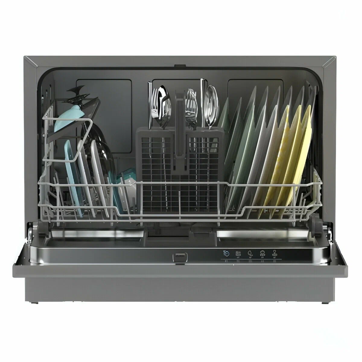 Компактная посудомоечная машина Candy CP 6F51LS-08, рассчитанная на шесть комплектов, оборудована вместительной корзиной и полками для кружек для удобного расположения предметов.• Функция AirDryПосле окончания программы дверца открывается автоматически, что ускоряет процесс сушки.• Пять программ мойкиПодберите подходящий режим для эффективной очистки. Функция Мытье тонкого стекла - для деликатной обработки, опция частичной загрузки и энергосбережения - для экономии ресурсов. Минипрограмма длительностью 35 мин избавляет от необходимости долгой настройки.• Таймер отложенного стартаМодель можно запрограммировать на автоматическое включение через 3 ч, 6 ч или 9 ч.• Открытая панель управленияС помощью электронных кнопок легко задавать нужные настройки. На цифровом дисплее отображаются выставленные данные, этапы работы и количество соли.• Защита от детейПанель управления можно заблокировать, чтобы предотвратить постороннее вмешательство.Посудомоечная машина относится к классу энергоэффективности A, так как потребляет всего 0,6 кВт*ч и 6,5 л воды за цикл. Устройство работает относительно тихо, уровень шума не превышает 51 дБ. Посуда сушится конденсационным способом. Когда прибор завершит работу, прозвучит сигнал.
