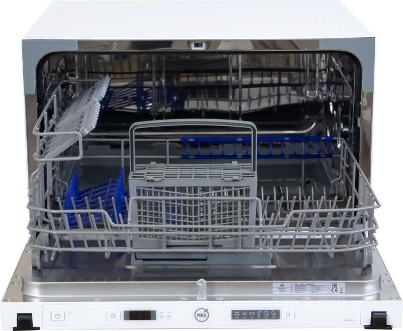 Бренд: MBS Тип посудомоечной машины: компактная Модель: DW-606 PartNumber/Артикул Производителя: 6116 Тип установки: полностью Загрузка, комплектов посуды: 6 Количество корзин: 1 Максимальная потребляемая мощность: 610 Вт Класс энергопотребления: A++ Класс мойки: A++ Класс сушки: A+ Тип сушки: конденсационная Тип управления: электронное Тип защиты от протечек: полная (корпус + шланг для заливки воды) Максимальный уровень шума: 49 дБ Максимальный расход воды: 6.5 л Количество программ мойки: 6 Вес товара: 21 кг Размеры: 55x45.2x51.8см Габариты упаковки (ед) ДхШхВ: 0.565x0.53x0.465 м Вес упаковки (ед): 25 кг Объем упаковки (ед): 0.13924425 м3 Максимальная температура: 70 °С Минимальная температура: 45 °С Напряжение питания: 220-240 В Технология защиты от протечек: AquaStop Материал корпуса: металл Цвет панели управления: белый Безопасность и управление: защита от протечек, таймер отсрочки запуска Внутренняя конструкция: корзина для столовых приборов Дополнительные особенности: использование средств 3 в 1 Индикация: наличия ополаскивателя, наличия соли Режимы и программы: экономичная мойка
