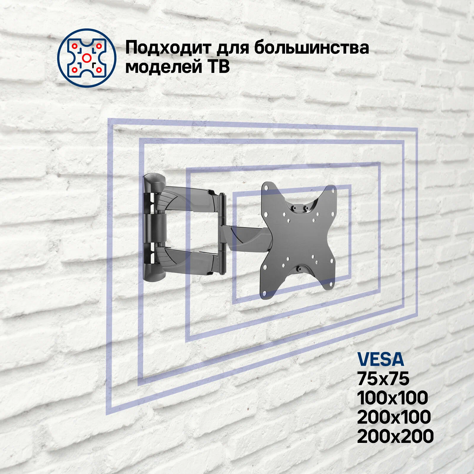 Стандарт крепления VESA: 100x100 мм, 200x100 мм, 200x200 мм, 75x75 мм