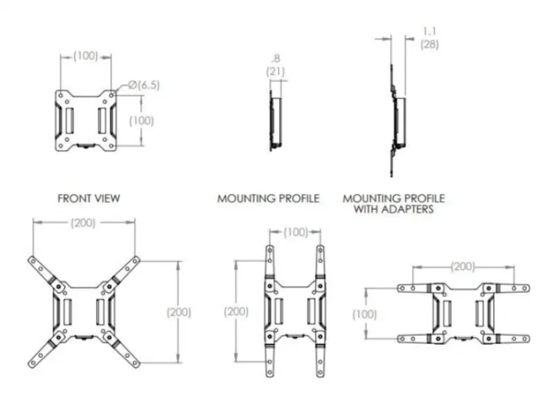 OmniMount OS50F Black — простой в монтаже держатель для телевизора или монитора. OS50F совместим с большинством телевизоров и мониторов с диагональю от 13 дюймов, представленных сегодня на рынке. В комплект входят адаптеры для совместимости с VESA стандартом до 200x200 мм. Полный комплект для монтажа входит в комплект поставки. Максимальная нагрузка 18,1 кг Монтажный профиль: 21 мм (без адаптера), 28 мм (с адаптером) Соответствует стандарту VESA: 75X75, 100X100, 100X200, 200X100, 200X200
