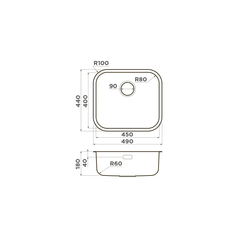 - Дополнительная информация: монтаж под столешницу, толщина металла 0.8 мм, диаметр сливного отверстия 90 мм