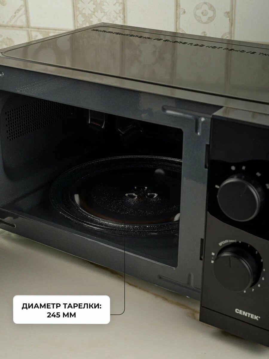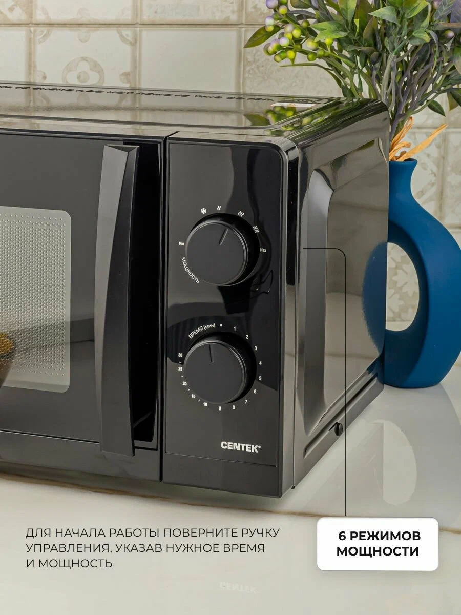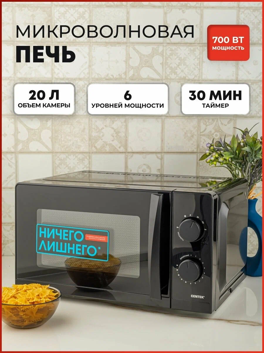 Микроволновая печь CENTEK CT-1571 - это надежное и функциональное устройство для быстрого и удобного приготовления пищи. Объем 20 литров и мощность микроволн 700 Вт позволяют быстро и равномерно разогреть или приготовить пищу. Особенностью данной модели является подсветка камеры, которая позволяет контролировать процесс приготовления пищи, не открывая дверцу. Управление печью осуществляется механическим способом, что гарантирует надежность и долговечность работы. Печь оснащена поворотными механическими переключателями и имеет 6 уровней мощности, что позволяет выбрать оптимальный режим для приготовления различных блюд. В комплект поставки входят роликовая подставка, стеклянный поддон и документация. Микроволновая печь CENTEK CT-1571 - это надежный и функциональный помощник на вашей кухне, который обеспечит быстрое и качественное приготовление разнообразных блюд.