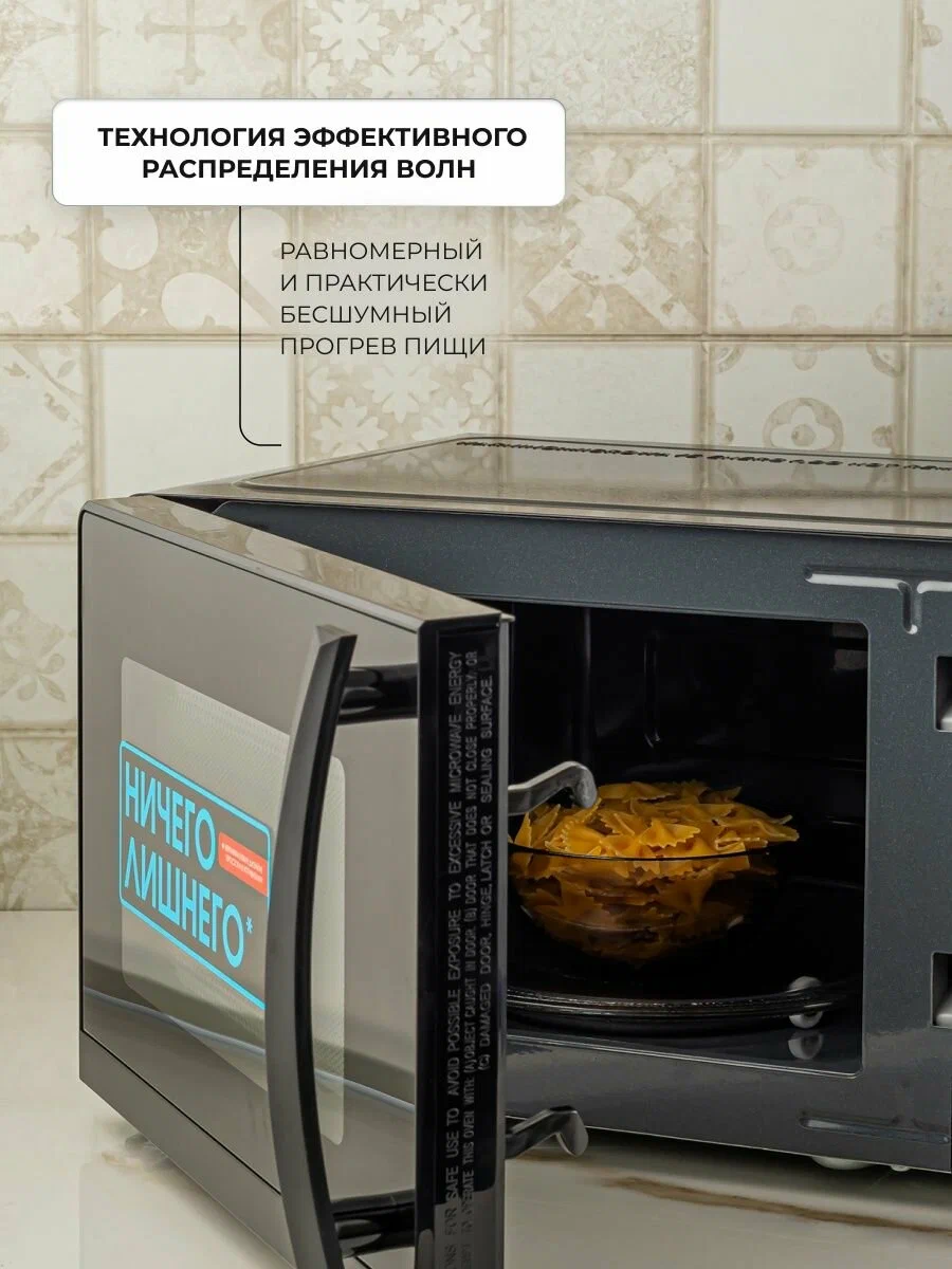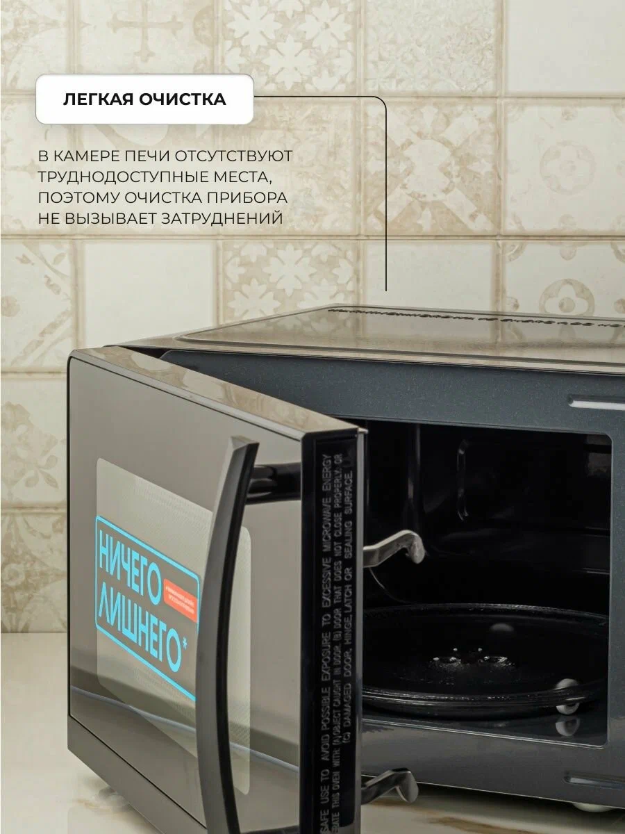 В комплекте: микроволновая печь, роликовая подставка, стеклянный поддон, документация