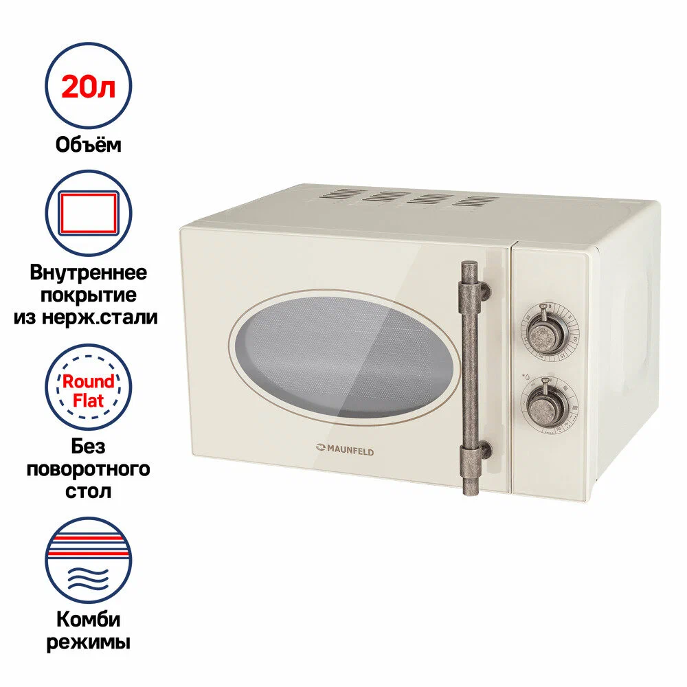 Микроволновая печь Maunfeld JFSMO.20.5. GRIB будет прекрасно смотреться на любой кухне. Благодаря стильному дизайну светлый корпус, эффектные ручки поворотных механизмов и т. д. данная модель украсит собой классический или современный дизайн. Полезный объем микроволновой печи 20 литров; встроенный гриль. В СВЧ-печи Maunfeld предусмотрено восемь режимов работы, что позволяет не только обеспечить эффективные разогревание и разморозку, но и готовить простые блюда в случае необходимости. Максимальное время установки встроенного механического таймера составляет 30 минут.