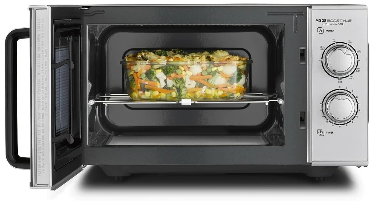 Микроволновая печь с керамической панельюИдеальна для прямоугольных форм для запеканияПолезная площадь больше на 80Без поворотной тарелкиЭкономит место, время и энергиюОбщие данные:Габариты: 29x50x42 смОбъем: 25 лТип управления: механическийРежимы работы: соло грильКварцевый гриль мощностью 1000 ВтМощность микроволн 900 ВтЦвет: серебристыйВес: 13.9 кгРежимы работы:3 комбинированные программы (микроволны гриль)1 программа гриляУправление и функции:Простое управление с помощью поворотных ручекТочный 30-минутный таймер с звуковым сигналом5 уровней микроволнДополнительная информация:Внутренняя поверхность камеры с высококачественным защитным покрытием Caso-clean для легкой очисткиЭлегантный внешний вид с серебристым корпусомПриготовление на двух уровнях благодаря выдвижной решетке