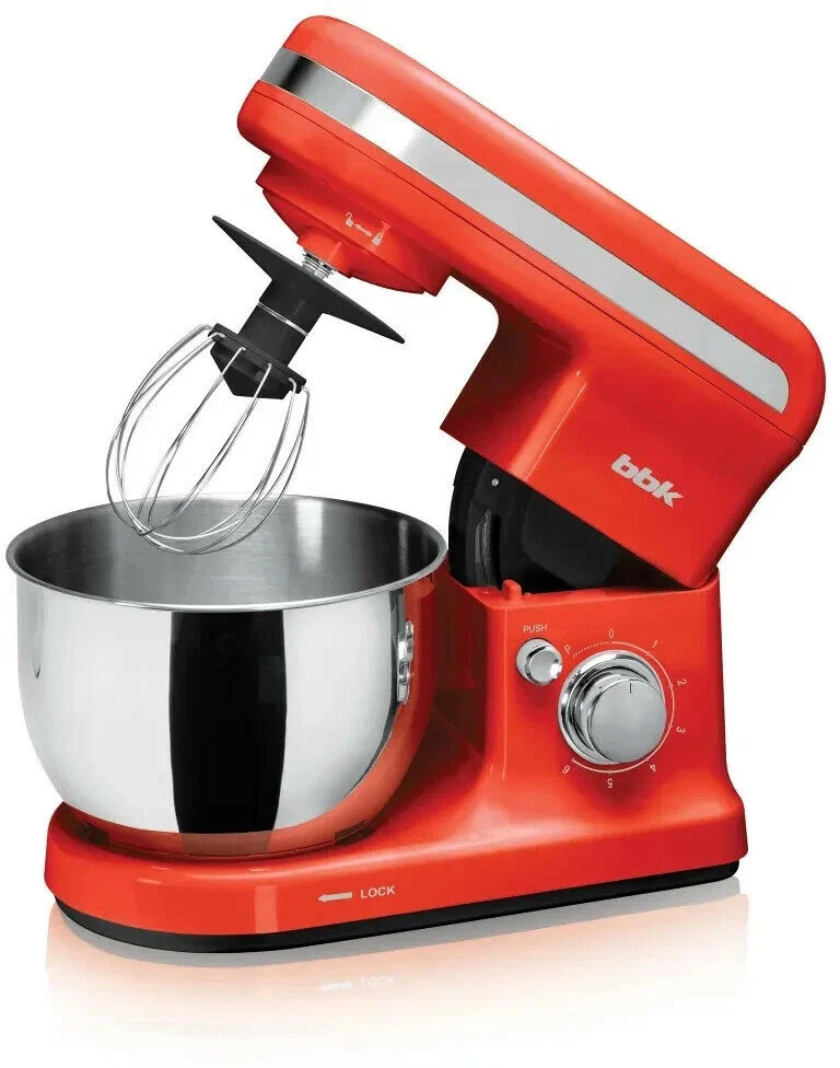 Мощность: 1000 Вт; Цвет: красный; Тип: стационарный; Объем чаши: 4 л; Число скоростей: 6; Количество насадок миксера: 3; Насадки: венчик металлический для взбивания, венчик А-образный, замесочный крюк; Материал корпуса: пластик;