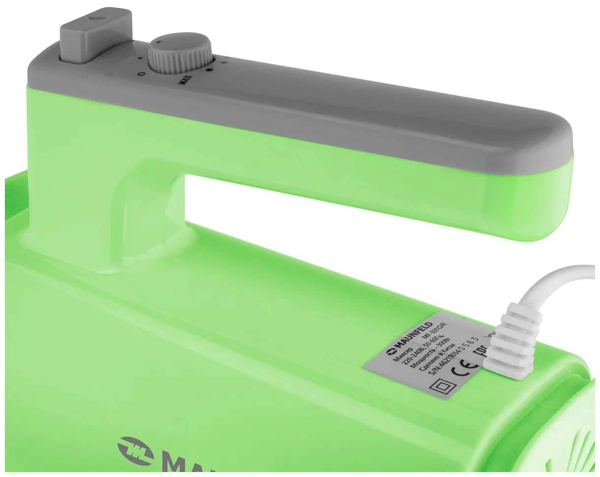 Ручной миксер MF-331GR легко воплотить любую кулинарную фантазию в реальность.Особенности:Миксер MF-331 позволит вам легко воплотить любую кулинарную фантазию в реальность: взбить нежнейшие сливки, смешать соус, крем, приготовить пюре или замесить тесто. Создание вкуснейших блюд станет простым и увлекательным занятием.Благодаря компактным размерам миксер не займет много места на вашей кухне, его удобно хранить и использовать.Миксер укомплектован четырьмя дополнительными насадками, что делает его универсальным и незаменимым помощником на кухне.Благодаря мощному мотору 300 Вт миксер справится с любой сложной задачей , будь то взбивание крема или замешивание теста.Яркая расцветка миксера добавит красок вашей кухне и обеспечит вам хорошее настроение.Эргономичная ручка - важная деталь, обеспечивающая вам комфорт и удобство в обращении с миксером, она надежно лежит в руке и практична в использовании.Легкий вес - еще одно преимущество миксера. Корпус и мотор устройства имеют облегченную конструкцию при высокой производительности, что позволит вам использовать его продолжительное время без ощущения усталости.Продуманный дизайн: все насадки извлекаются из корпуса легким нажатием кнопки. Мы заботимся о вашем удобстве и продумываем эргономику до мельчайших деталей.Наличие градации в 8 скоростей позволит вам выбрать скорость для любой нестандартной ситуации: вы легко сможете смешать ингредиенты на медленной скорости, а затем постепенно перейти на высокую, для достижения нужного результата.Характеристики:Максимальная мощность: 300 ВтТип управления: механическоеДлина шнура: 100 смКоличество скоростей: 8Количество насадок: 4Защита от перегреваЦвет: зеленыйРазмер: 19.7х28х8 смВес: 0,93 кг