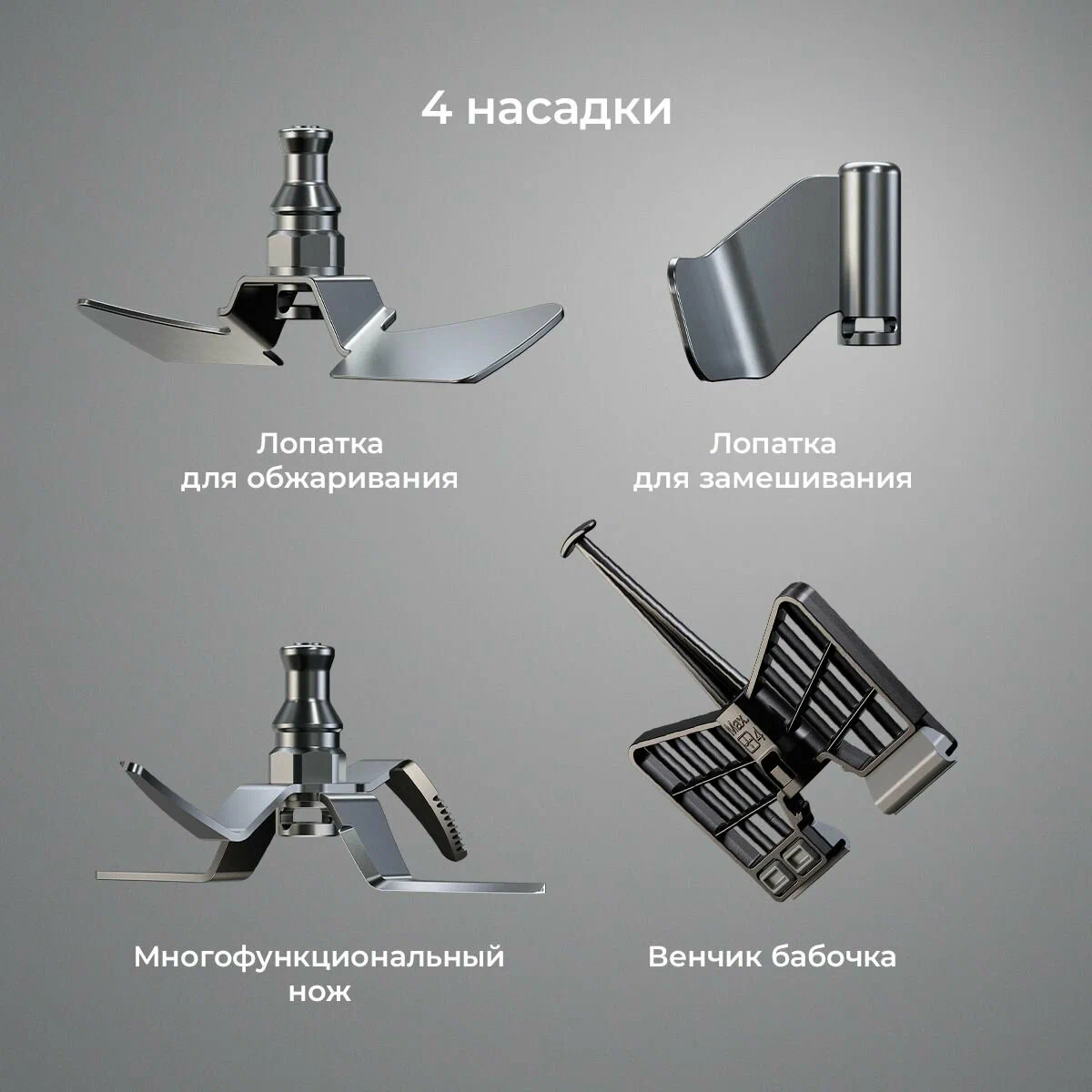 Умный домашний шеф, который всегда рядом, чтобы помочьОсобенности:Готовка превращается в удовольствиеВстроенная кулинарная книга с пошаговыми рецептами, яркие фото готовых блюд, точный состав, калорийность и уровень сложности всё это на экране вашего нового помощника.Готовьте как профессионал с помощью точных подсказок и рекомендаций и удивляйте своих близких каждый деньСоздавайте свою кулинарную коллекциюДобавляйте любимые рецепты прямо в устройство: укажите ингредиенты, калорийность, количество порций и загрузите фото готового блюда.Ваши семейные шедевры всегда под рукой готовить их ещё проще с пошаговыми инструкциями на экране.Персонализируйте свой KitchenBot M5 и превращайте приготовление пищи в особенный моментЛюбимые блюда с минимальными усилиями22 автоматических режима, просто выберите нужный, а устройство само настроит необходимые параметры температуру, мощность нагрева, скорость и время приготовленияГотовьте на своих условияхРучное управление позволяет точно настроить каждый параметр: температуру, мощность нагрева, скорость и время.Хотите полный контроль над приготовлением блюд С KitchenBot M5 вы можете готовить именно так, как вам нравится с гарантированным идеальным результатом.Кулинарная книга в комплектеВ книге собраны разнообразные рецепты, которые помогут вам приступить к созданию вкусных блюд. Кулинарная книга станет вашим вдохновением и верным помощником. Откройте для себя новые горизонты и превратите каждое блюдо в шедеврДо 4-х блюд одновременноБлагодаря большой чаше, корзине-ситу и двухъярусной пароварке вы сможете сварить суп, приготовить рассыпчатый рис, сочные овощи, нежную рыбу или тефтели за один раз. Хотите быстро и вкусно накормить всю семью KitchenBot M5 сделает это возможнымТеперь все под рукойУправление стало еще удобнее, благодаря цветному сенсорному дисплею с диагональю 5 дюймов.Интуитивно понятный интерфейс позволяет легко выбирать необходимый автоматический режим, понравившееся блюдо или настроить все параметры вручную, делая процесс готовки комфортным и быстрым. Просто коснитесь экранаУправляйте кухней через мобильное приложениеС KitchenBot M5 управление становится проще и удобнее благодаря мобильному приложению.Вы дистанционно контролируете процессы приготовления прямо со своего смартфона.Выбираете программы, настраиваете параметры и следите за ходом готовки, даже находясь в другой комнате.Приложение позволяет сохранять собственные рецепты и планировать список покупок, чтобы вы всегда были готовы к следующему кулинарному шедевру.Встроенные весыТочные встроенные весы с шагом измерения в 1 грамм, на которых можно взвесить продукты массой от 1 до 4999 г.Температура приготовленияТемпература приготовления настраивается в диапазоне от 37 до 180 C с точностью до 1 градусаМощный моторРегулировка скорости вращения в диапазоне 60-7000 оборотов в минуту позволяет добиться равномерного перемешивания на низких скоростях и быстро измельчить даже самые твердые ингредиенты на высоких.Новый уровень комфортаУвеличенный объем чаши 3.2 л и удобная центральная ручкаПросто готовить Просто мытьАвтопрограмма самоочистки и возможность мыть детали в посудомоечной машине избавят вас от забот. Готовьте разнообразные блюда каждый день и при этом тратьте минимум времени на уход за прибором. Чистота без
