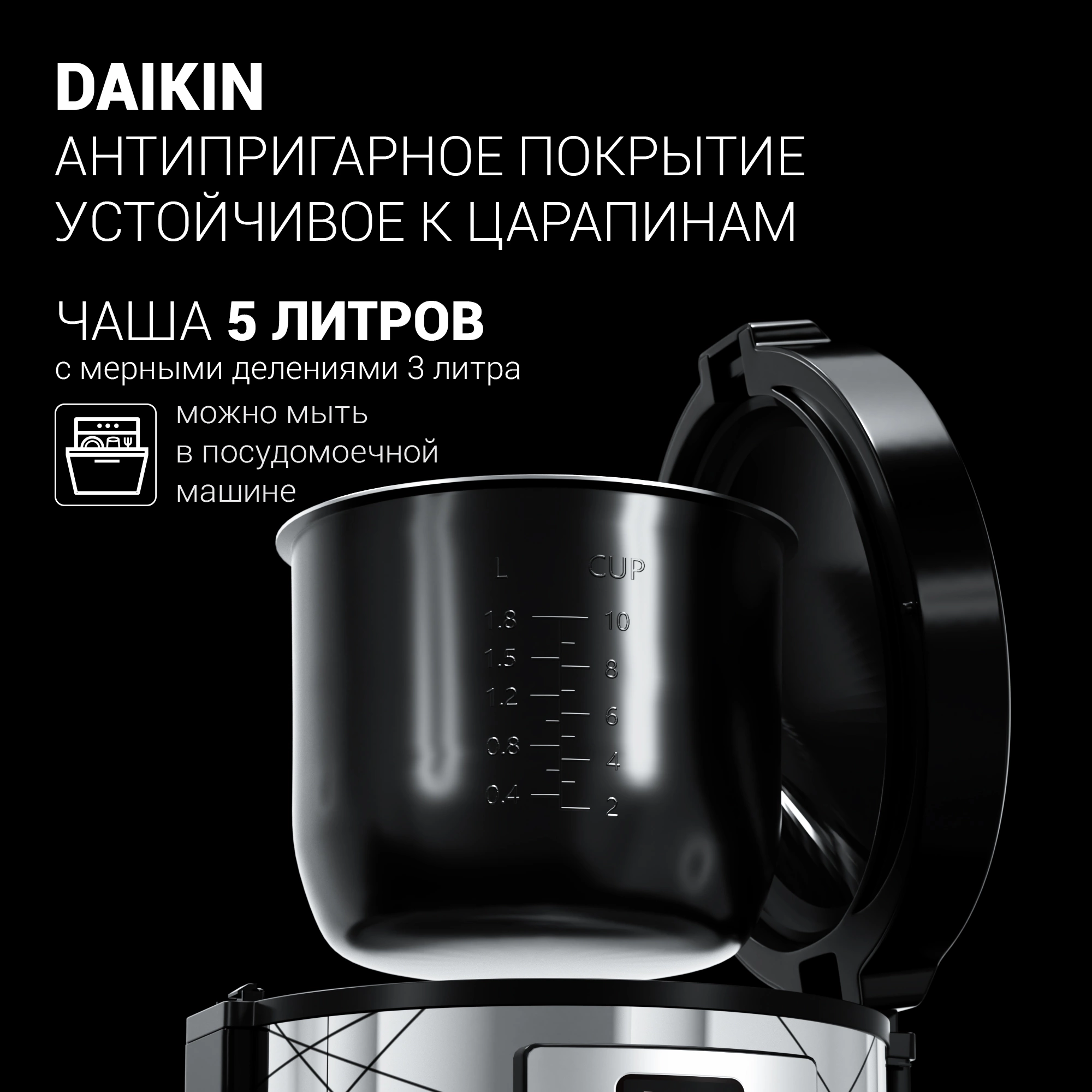 Программы приготовления: Выпечка, Крупа, Суп, Йогурт, Холодец, Тушение, Варенье, Плов, Жарка, Молочная каша, Варка на пару, Творог, Овсянка, Разогрев.