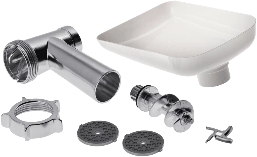• Дополнительная информация: 6 насадок в комплекте; материал лотка: пластик; количество насадок для приготовления колбас: 1