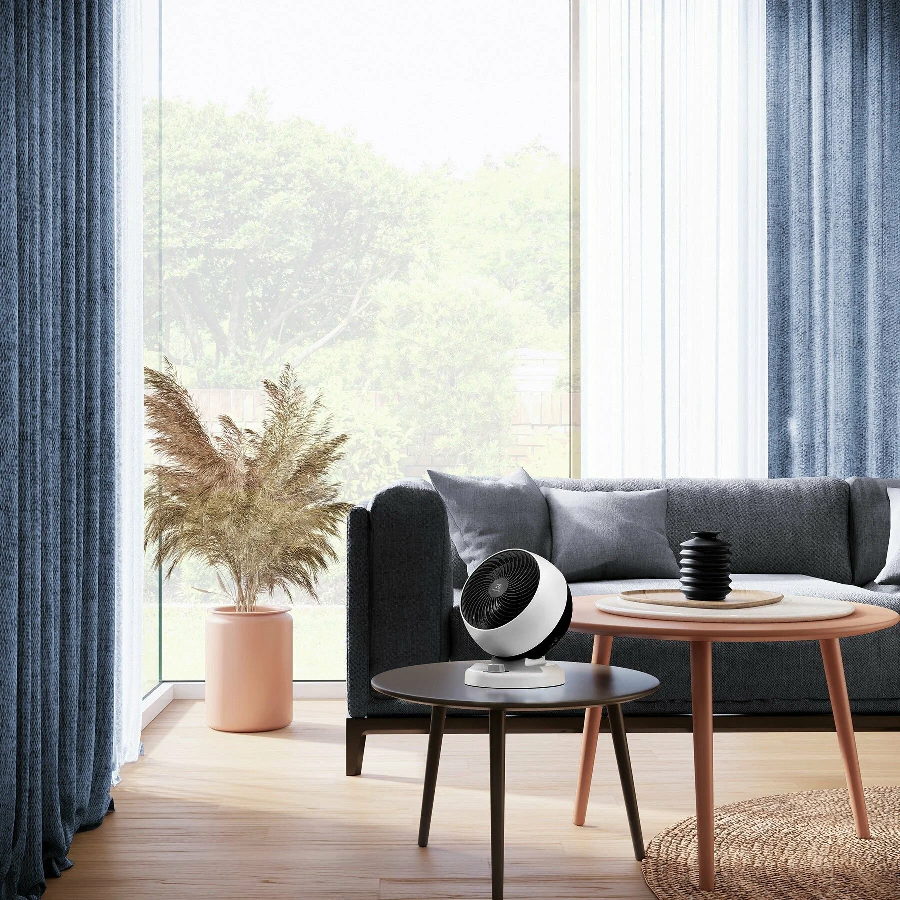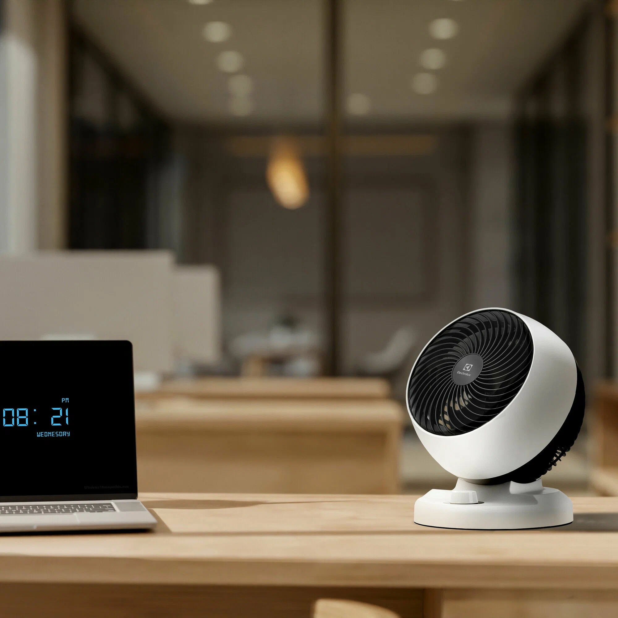 **Настольный вентилятор Electrolux ETF-108W** – компактный и эффективный прибор для создания мгновенной прохлады. Технология BLOW UP дает возможность вентилятору выталкивать мощный поток воздуха вверх до 90° и по сравнению с обычным настольным вентилятором, модель ETF-108W способна не только создать локальный комфорт, но и поддержать проветривание целой комнаты. Продуманная аэродинамичная форма корпуса "SMART SPHERE" максимально снижает уровень шума при работе прибора, создавая неповторимый комфорт. Уникальная технология горизонтального автоскольжения на 60° в дополнение к возможности одновременно включить нужную интенсивность обдува позволяет создавать максимальный комфорт одним движением руки. Необычная космическая форма корпуса, стильное матовое исполнение классической расцветки и невидимый поворотный механизм делают прибор не только качественным помощником, но и выгодным дополнением любого современного интерьера.