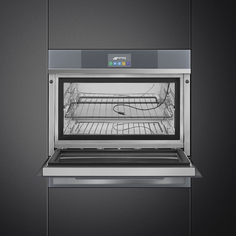 Шкаф скоростного охлаждения и шоковой заморозки Smeg SAB4104S поможет быстро понизить температуру продуктов и ингредиентов для дальнейшего приготовления. Управление производится нажатием кнопки на цветном TFT-дисплее. Автоматические программы помогут настроить нужные режимы. Температурный диапазон от −35 до 75°С. Работа вентилятора прекращается автоматически при открытии дверцы.