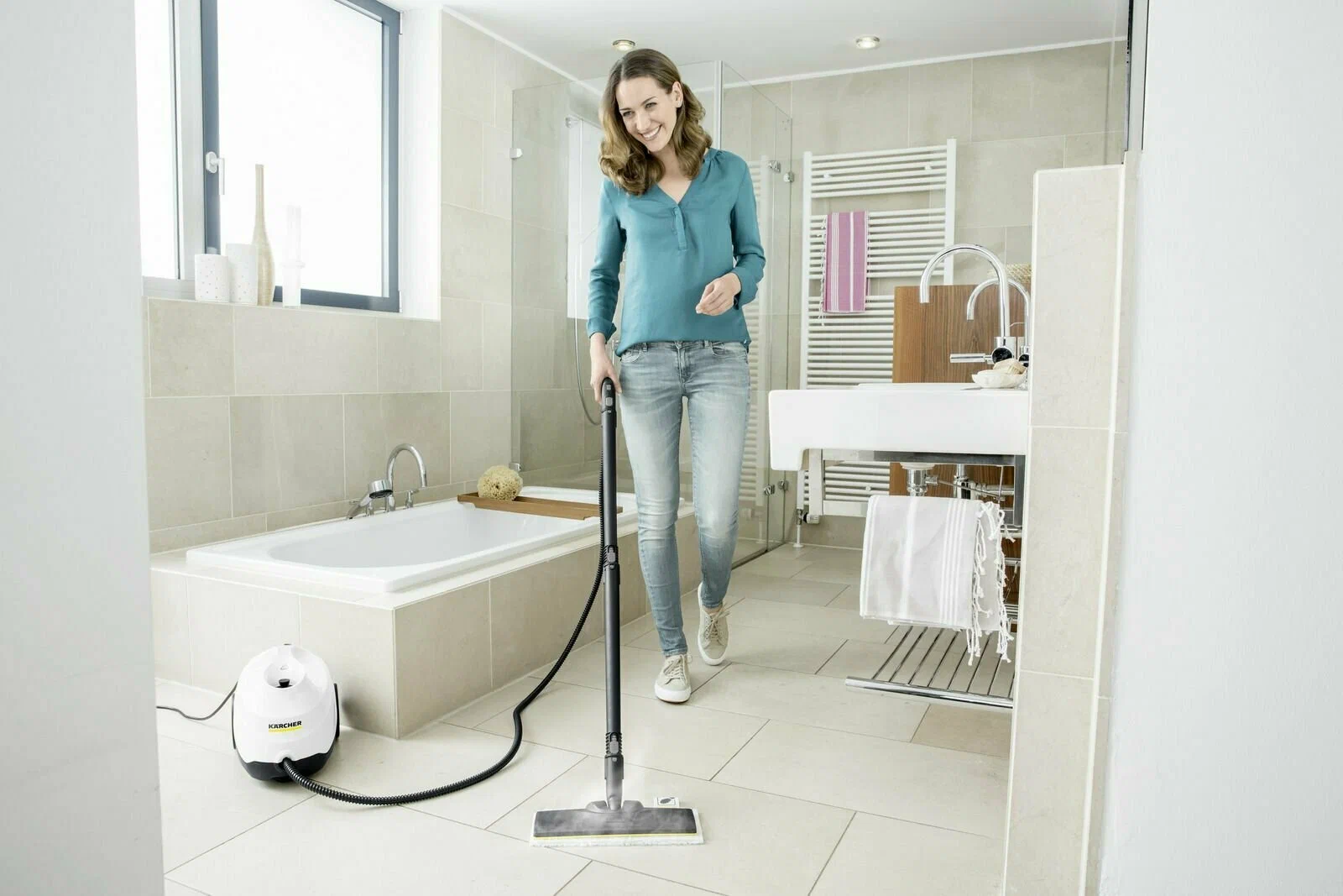 Пароочиститель Karcher SC 3 EF Anniversary Edition *EU 1.513-660.0. Пароочиститель SC 3 EasyFix с насадкой для пола EasyFix и картриджем для защиты от накипи обеспечивает непрерывную работу благодаря бачку для воды, наполняемому без отключения аппарата. Время нагрева составляет лишь 30 с. SC 3 EasyFix от Kärcher – самый быстродействующий пароочиститель, для разогрева которого достаточно лишь 30 секунд. При этом бачок для долива воды обеспечивает продолжительную непрерывную работу. Устанавливаемый в аппарат картридж для автоматического удаления накипи продлевает срок его службы. Пароочиститель SC 3 EasyFix работает без применения чистящих средств и может использоваться для решения самых разнообразных задач уборки. Он эффективно очищает любые твердые поверхности в доме. Широкий выбор принадлежностей позволяет тщательно очищать керамическую плитку, кухонные плиты, вытяжки и т. д. и даже удалять стойкие загрязнения из узких щелей и стыков. В комплектацию аппарата входит насадка для пола EasyFix с шарниром для удобной работы и пластинчатой подошвой, гарантирующей превосходные результаты чистки. Салфетка для пола легко устанавливается на этой насадке при помощи липучки и быстро снимается без контакта с грязью. 2-ступенчатый регулятор подачи пара позволяет адаптировать аппарат к различным видам загрязнений и очищаемых поверхностей. Другими особенностями аппарата являются держатели для принадлежностей и возможность закрепить насадку для пола вместе с удлинительными трубками и шлангом на время перерыва в работе. Пластинчатая подошва насадки гарантирует оптимальную очистку любых распространенных в быту твердых напольных покрытий. Система фиксации салфеток для пола липучкой позволяет легко закреплять салфетки и заменять их, не вступая в контакт с грязью. Шарнир обеспечивает удобную работу человеку любого роста и тщательную очистку благодаря хорошему контакту насадки с полом.